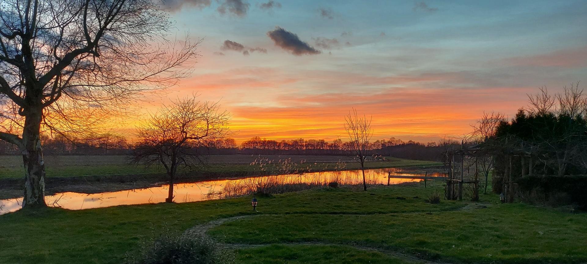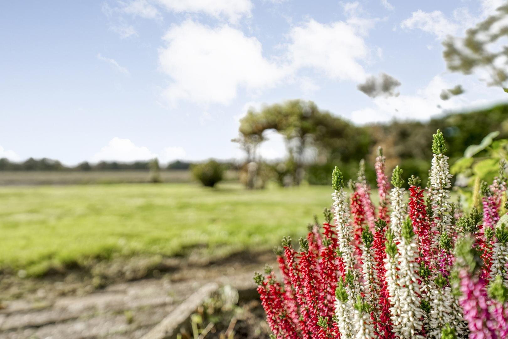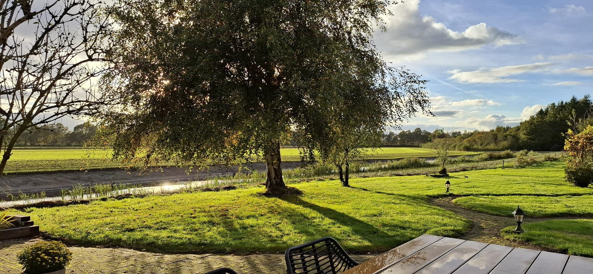 - parkachtige tuin met uitzicht over landerijen en water;