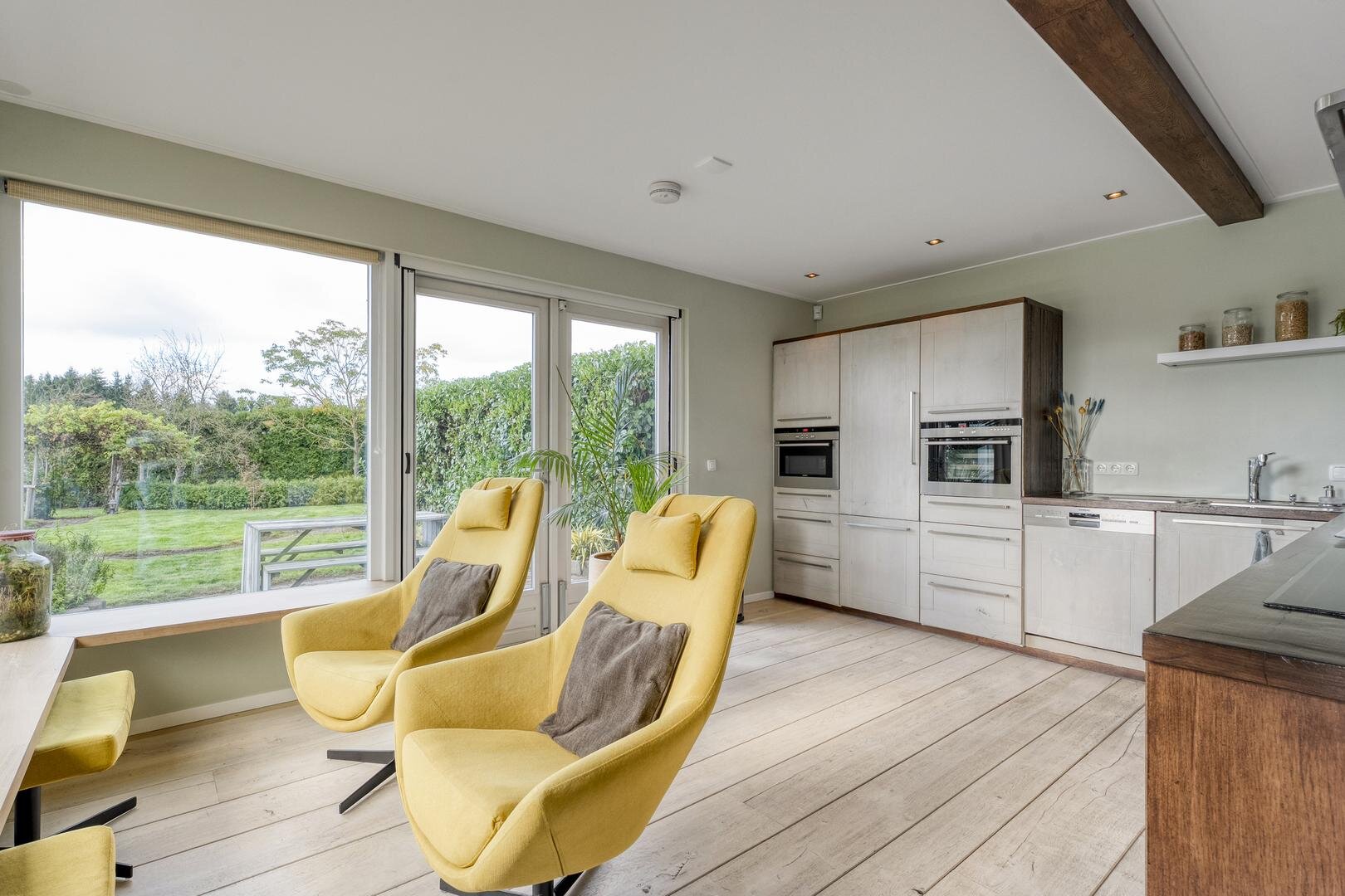 Het uitzicht maakt dit huis echt bijzonder. Door de grote ramen kijk je uit over natuurgebied De Dalerpeel, waar je de zon ziet zakken en regelmatig vogels en reeën voorbij ziet komen. Het water trekt volop leven aan en zorgt voor rust en ruimte om echt tot jezelf te komen.