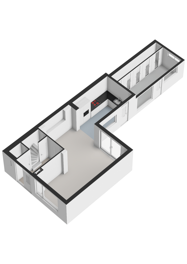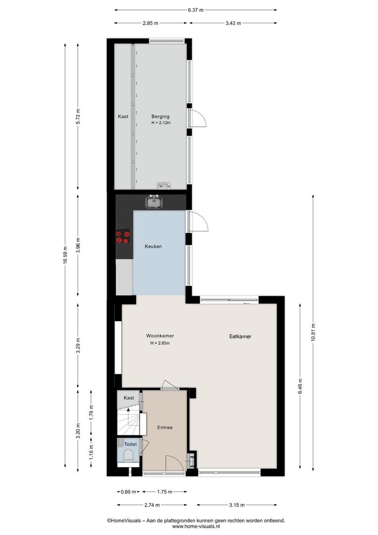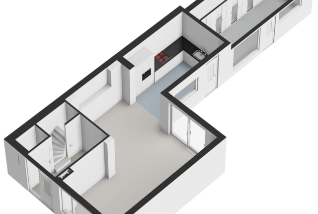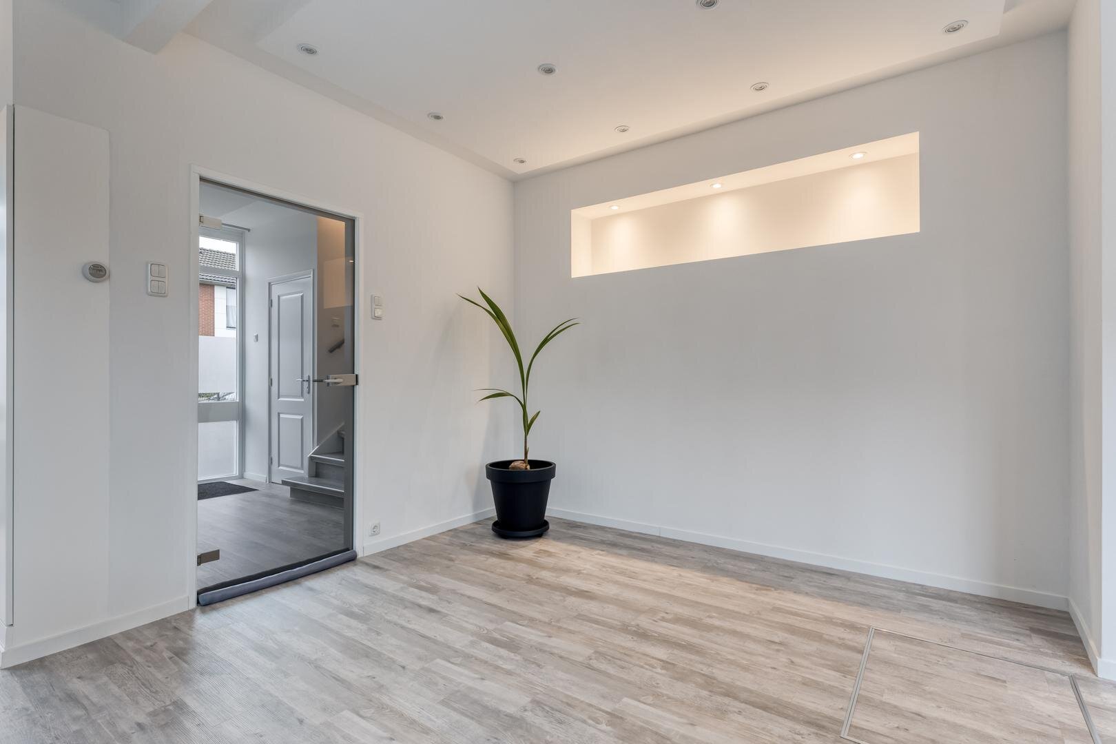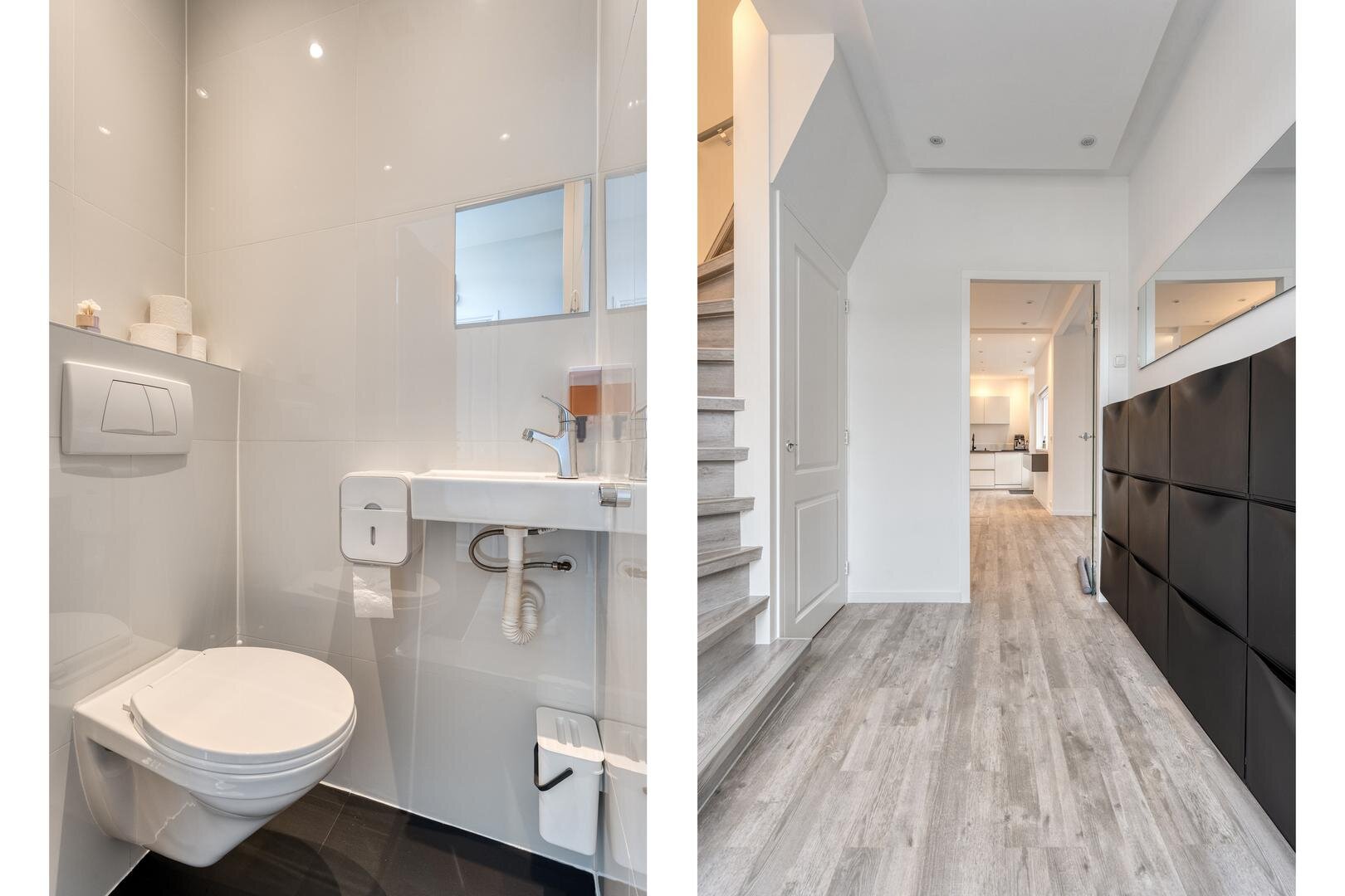 Begane grond: hal/entree met toilet. Woonkamer met laminaatvloer en trapkast. Halfopen keuken voorzien van een afzuigkap, koelkast, oven en vaatwasser. Ruime berging/kantoor met vaste kastenwand en wasmachineaansluiting.