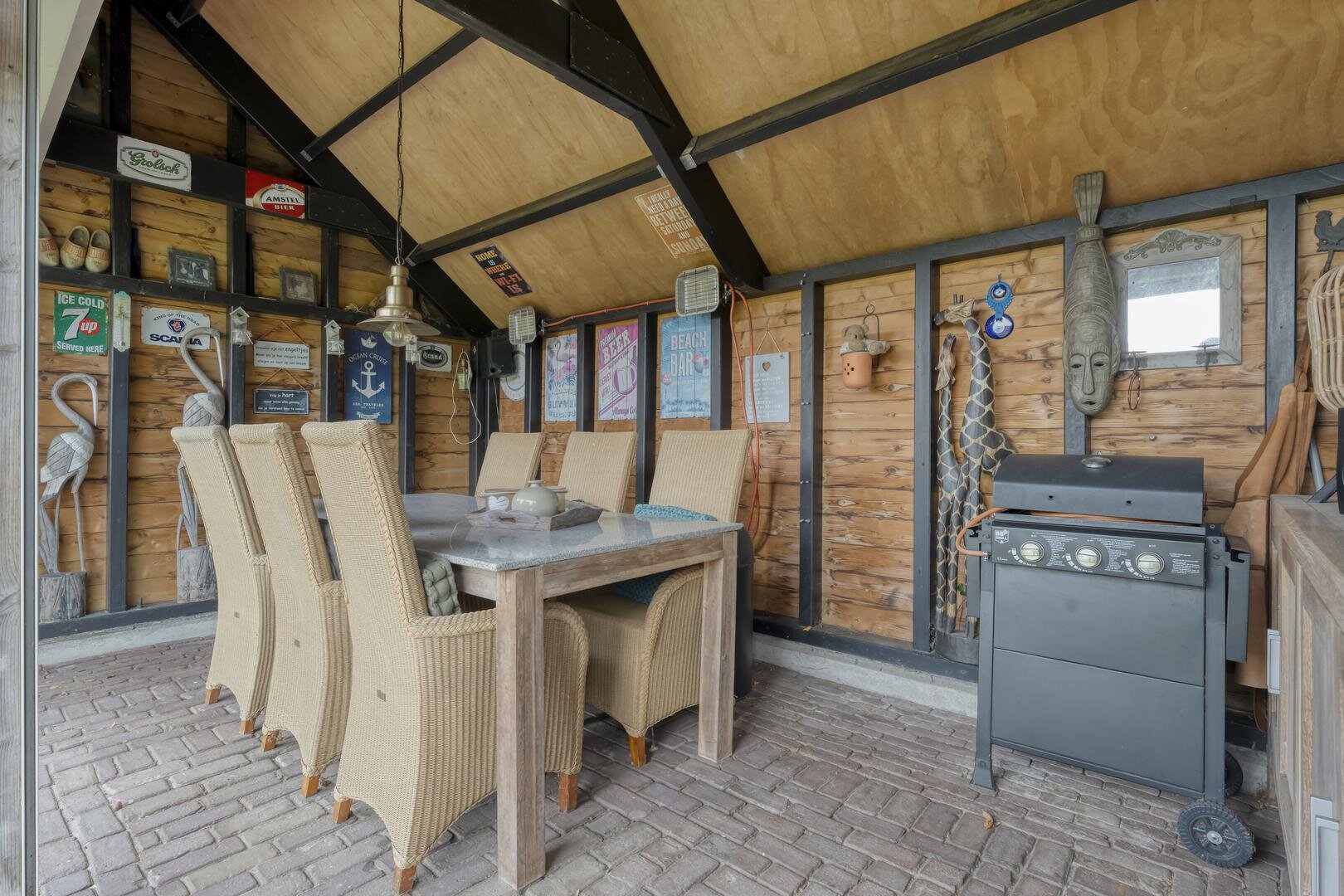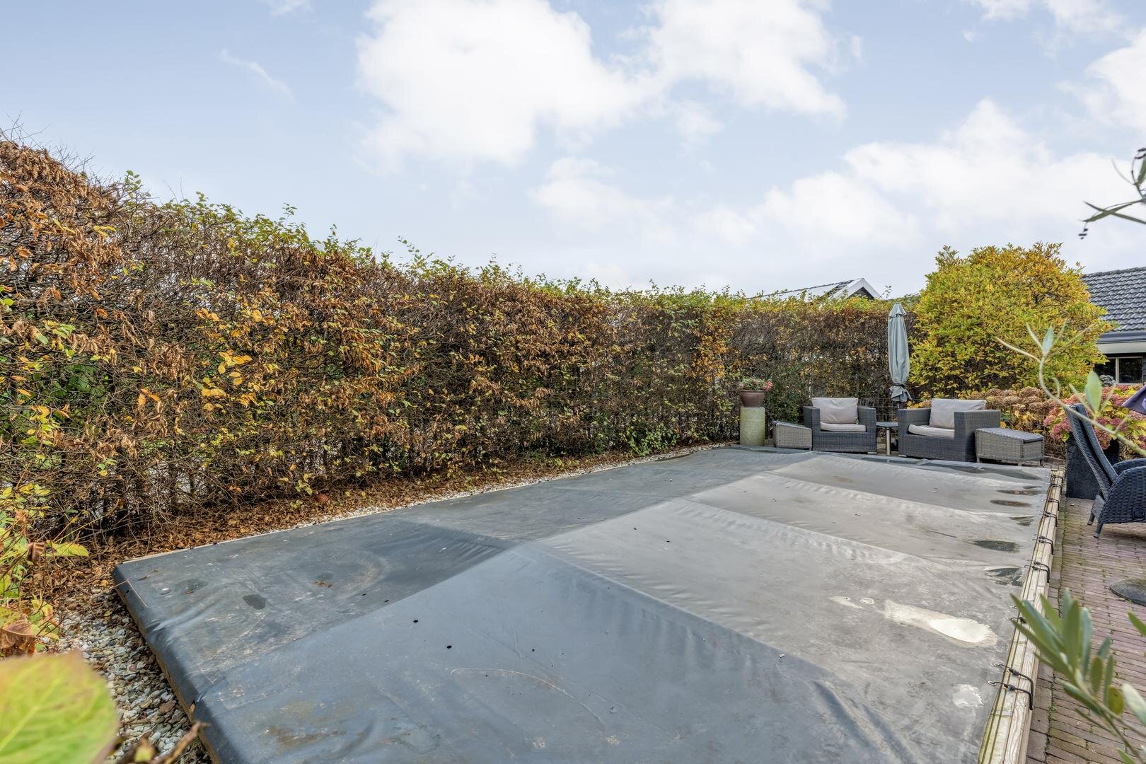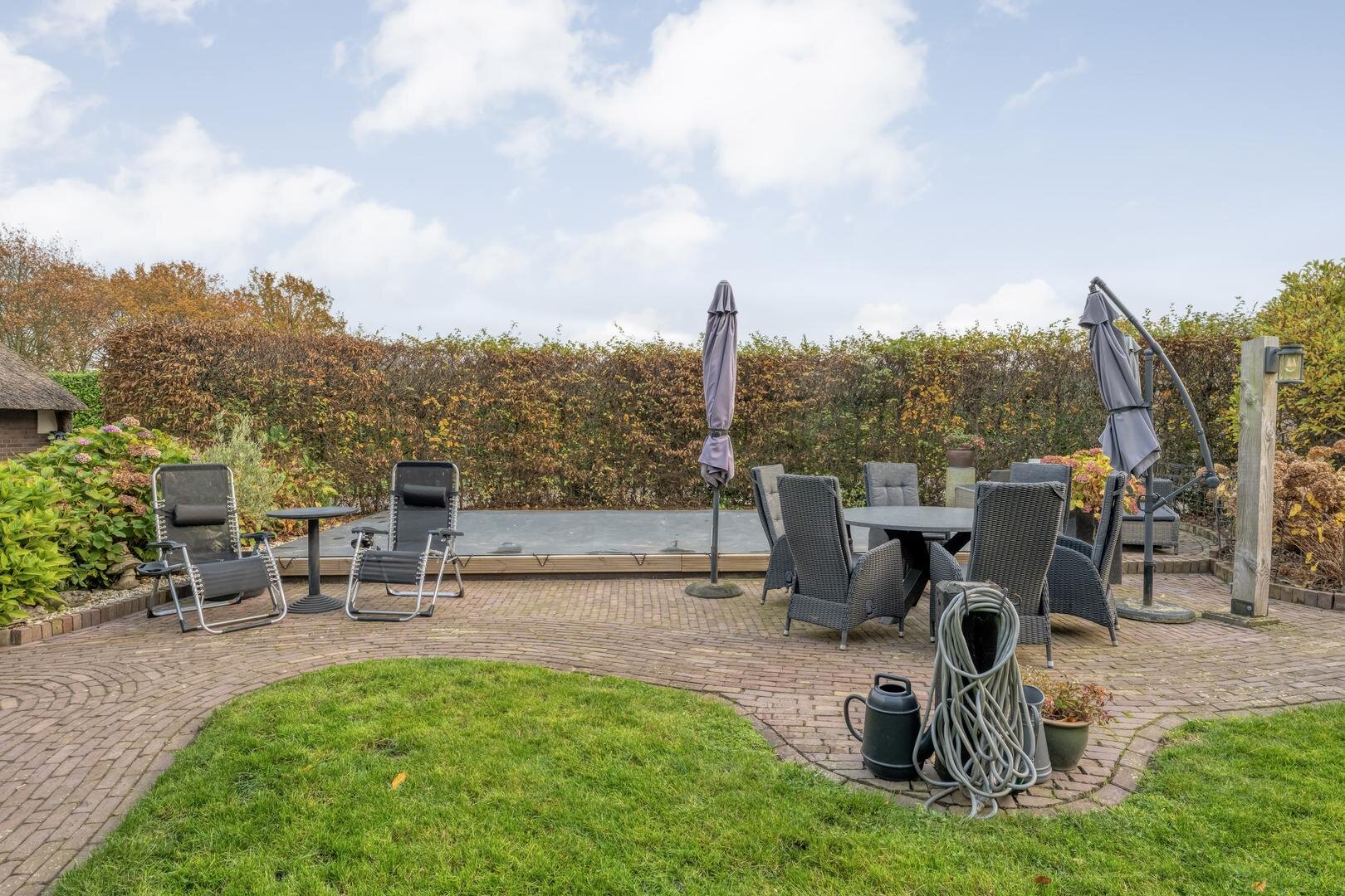 De tuin vormt een heerlijk verlengstuk van het woonhuis. Hier vindt u een verwarmd zwembad, met in 2024 vernieuwde vlonders die het geheel een frisse en eigentijdse uitstraling geven. Bij het zwembad staat een royale houten overkapping met dakpannen, een ideale plek om lange avonden buiten door te brengen en te genieten van de rust en ruimte die deze locatie te bieden heeft.
