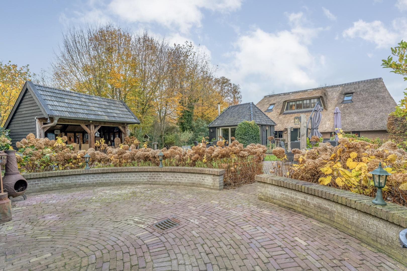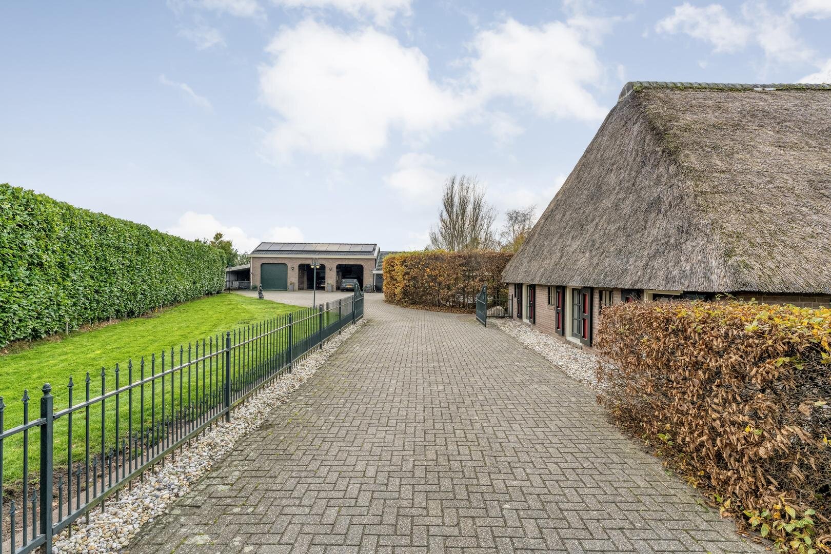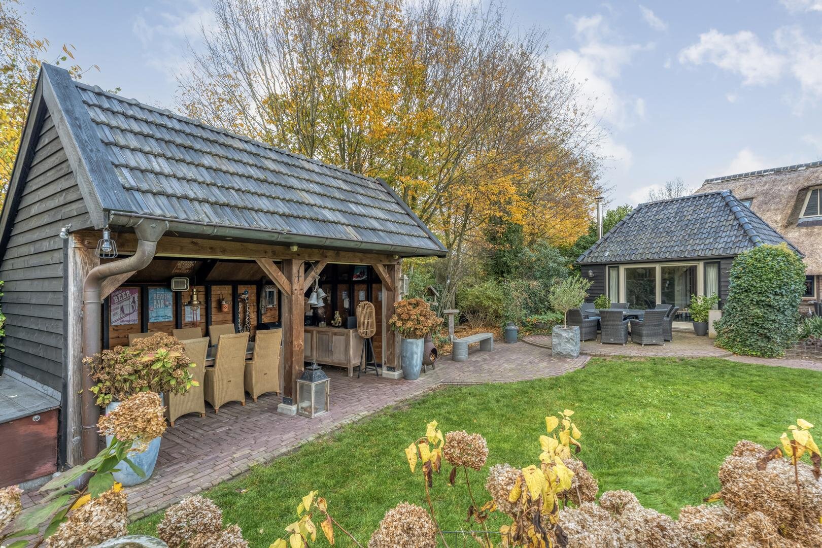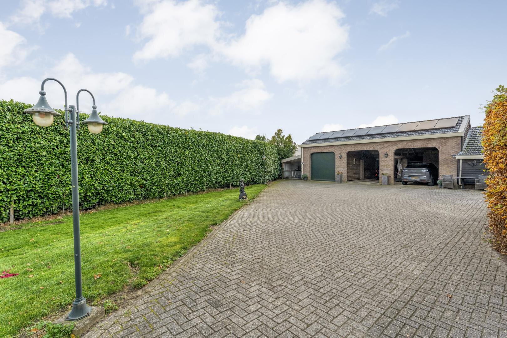 Rondom de boerderij liggen meerdere bijgebouwen die samen zorgen voor een indrukwekkende hoeveelheid extra ruimte en mogelijkheden. Zo zijn er drie garages, waarvan de linker garage afsluitbaar is en daardoor ideaal voor het stallen van een camper of caravan. Daarnaast is er een ruime werkplaats met een elektrische deur en krachtstroom.