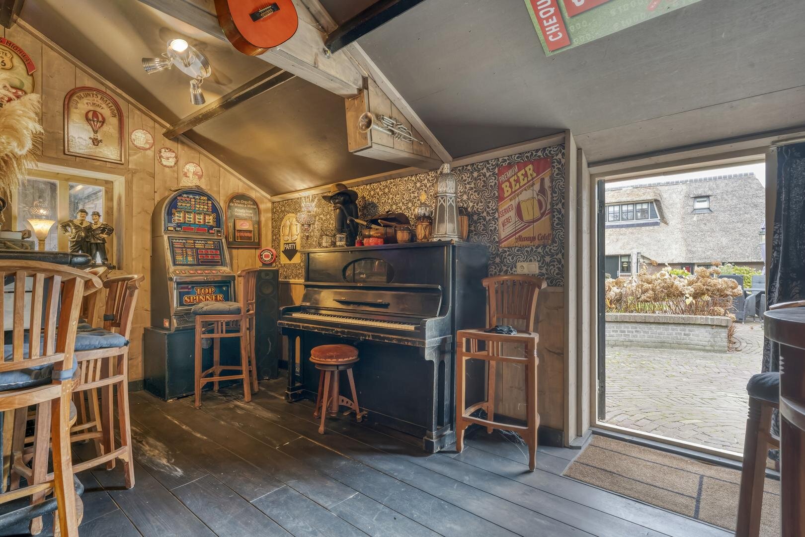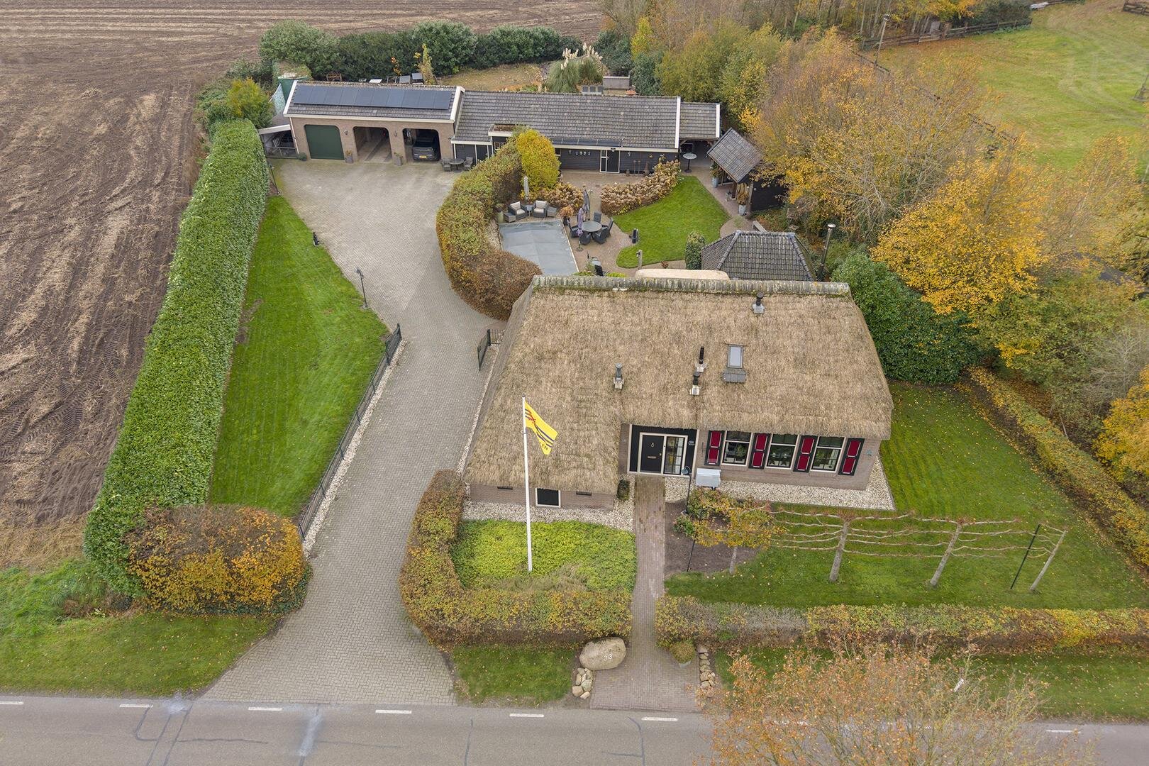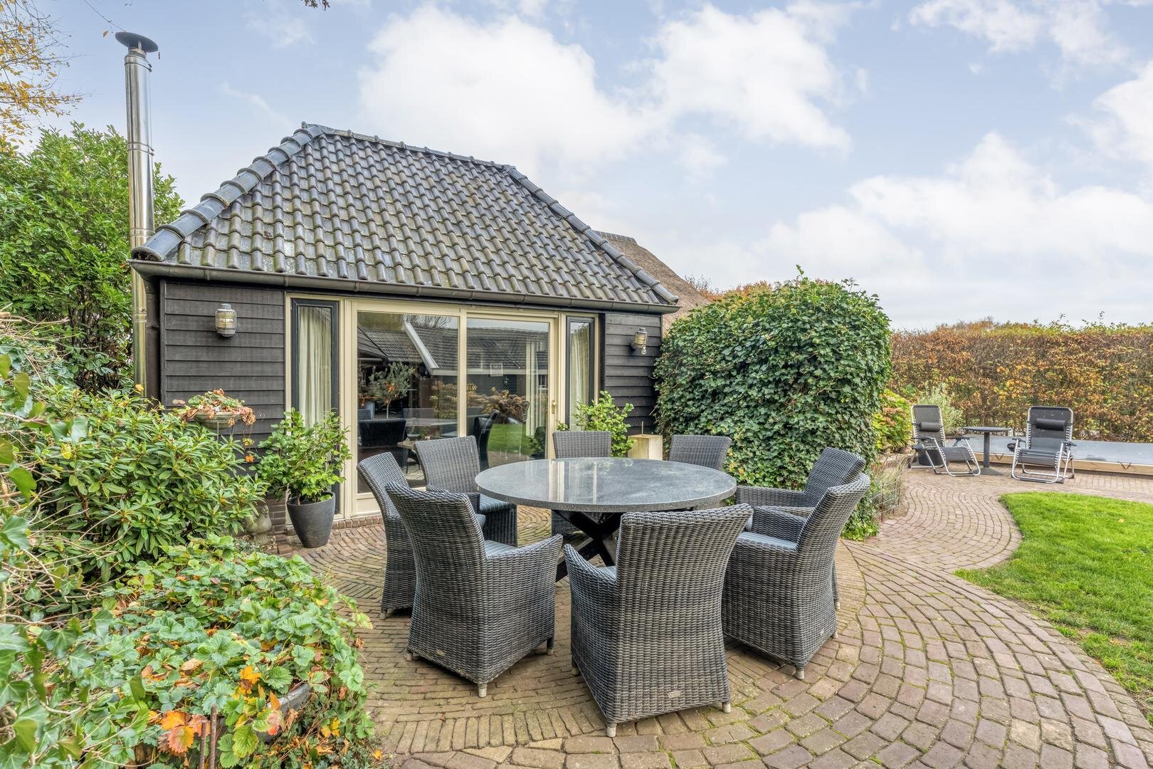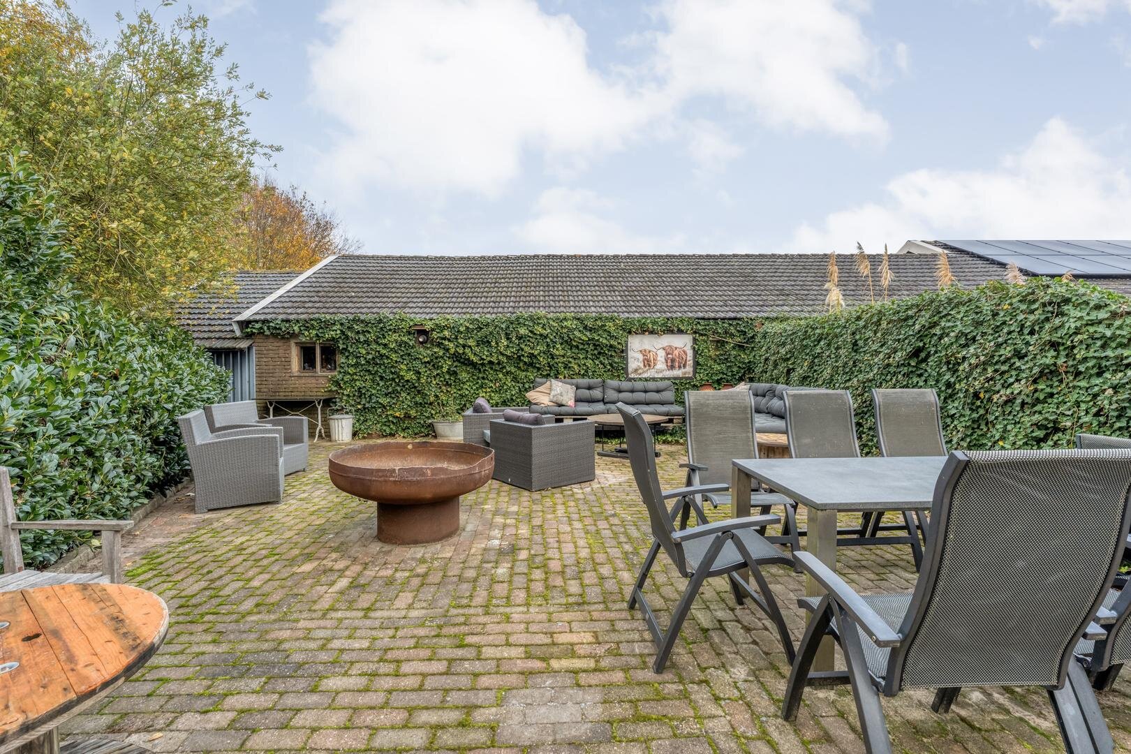 Rondom de boerderij liggen meerdere bijgebouwen die samen zorgen voor een indrukwekkende hoeveelheid extra ruimte en mogelijkheden. Zo zijn er drie garages, waarvan de linker garage afsluitbaar is en daardoor ideaal voor het stallen van een camper of caravan. Daarnaast is er een ruime werkplaats met een elektrische deur en krachtstroom.