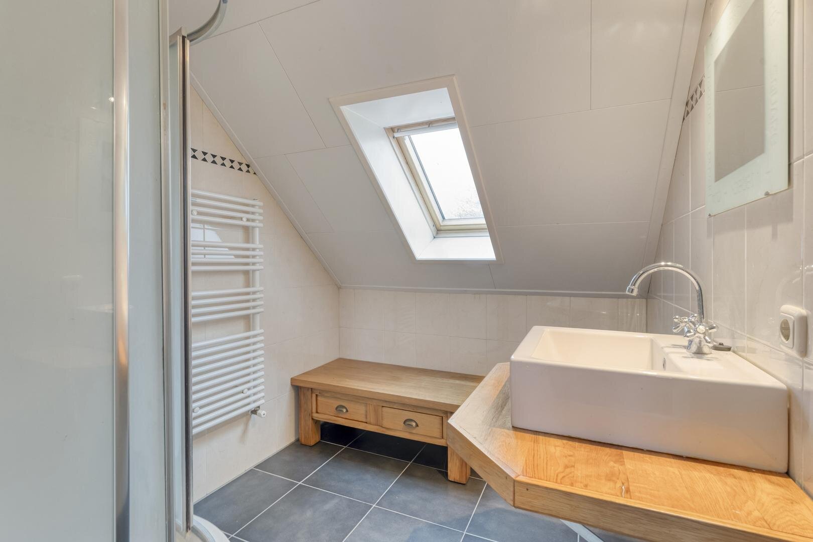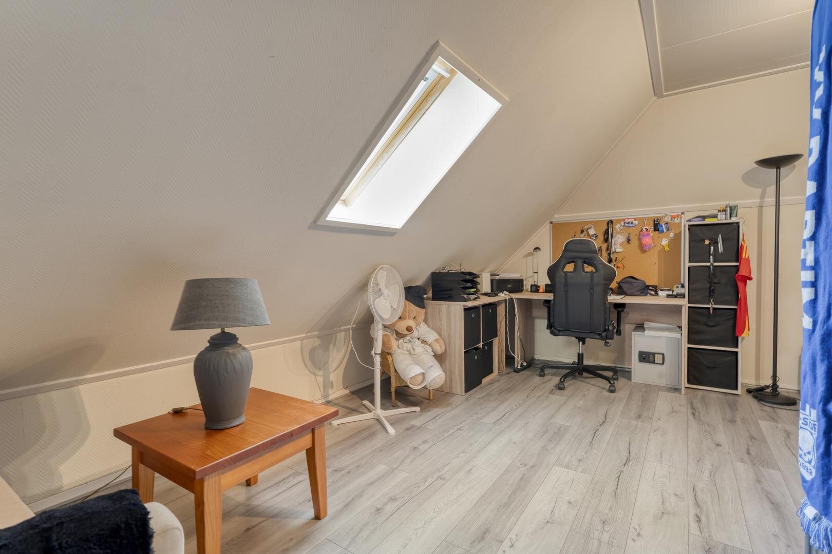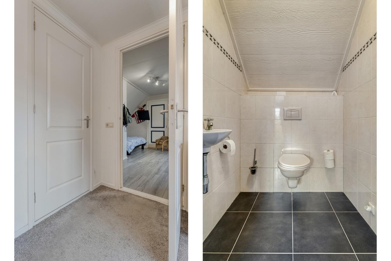 Eerste verdieping: overloop met dakkapel, toilet. Badkamer voorzien van een hoekdouche en wastafel. Twee slaapkamers voorzien van een laminaatvloer, vaste kast en een dakraam.