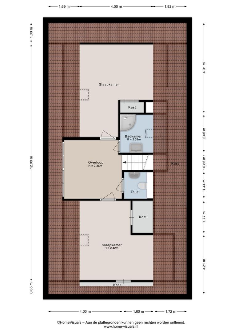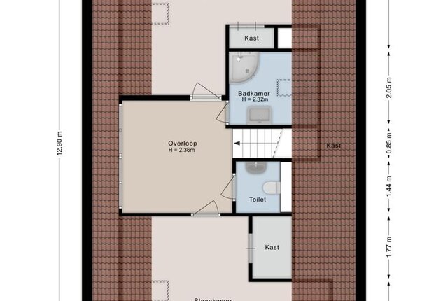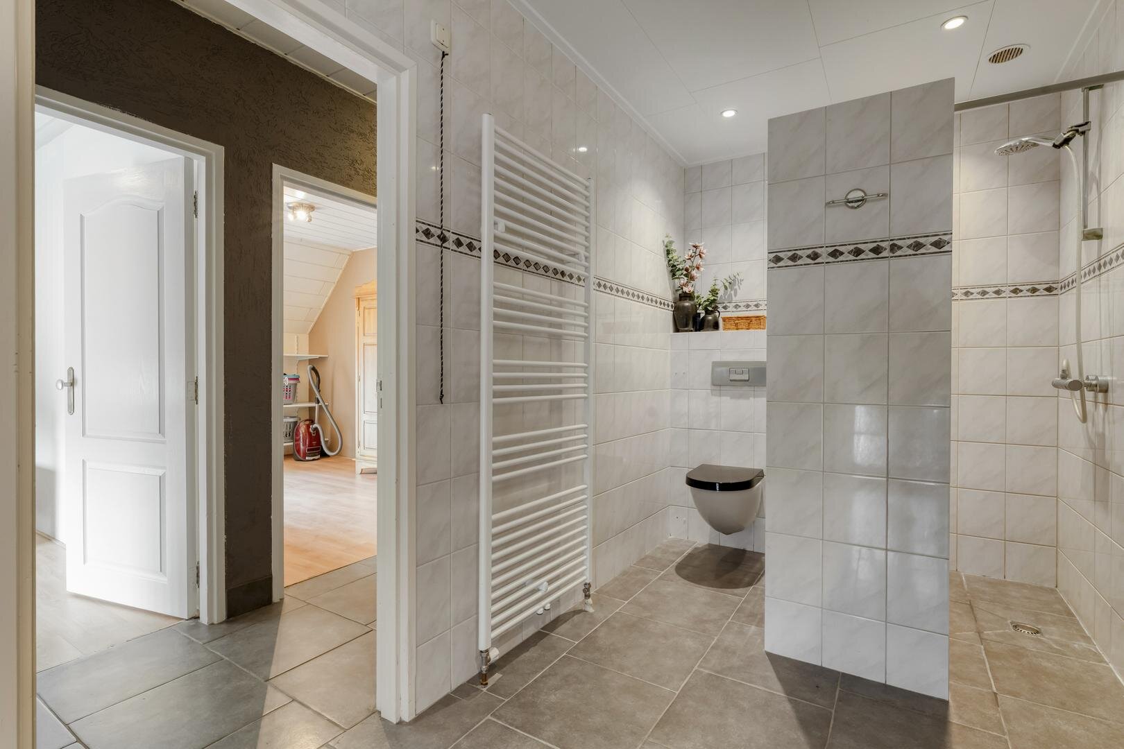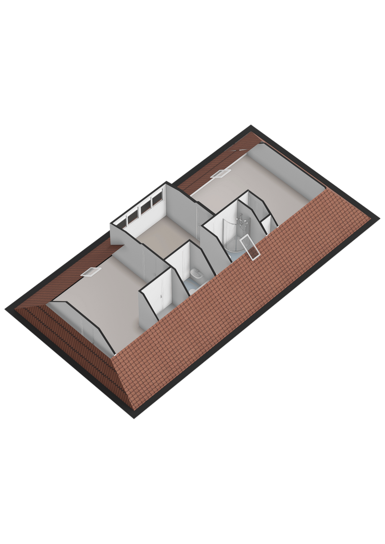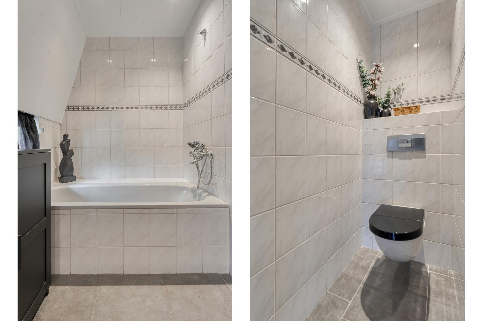 Eerste verdieping: overloop met dakkapel, toilet. Badkamer voorzien van een hoekdouche en wastafel. Twee slaapkamers voorzien van een laminaatvloer, vaste kast en een dakraam.