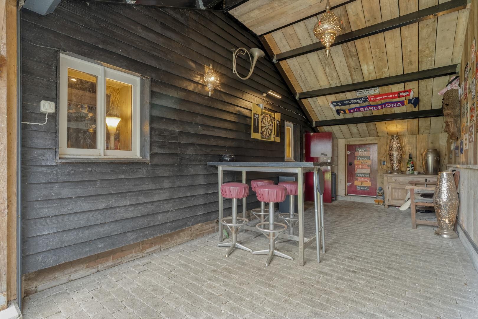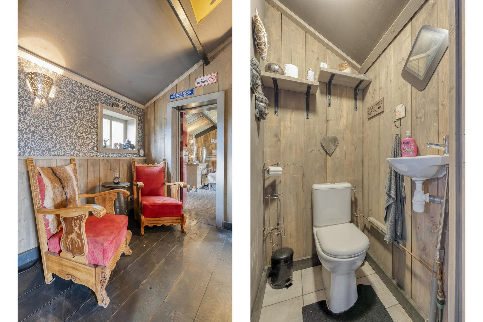 De voormalige varkensschuur is volledig geïsoleerd en omgetoverd tot een sfeervol café met tap, beamer en palletkachel. Ook hier is een overkapping aanwezig waar u droog en beschut kunt zitten. Het terras achter dit café biedt een schitterend uitzicht over de omliggende landerijen, waardoor het een prachtige plek is om gasten te ontvangen of gewoon te genieten van de stilte.