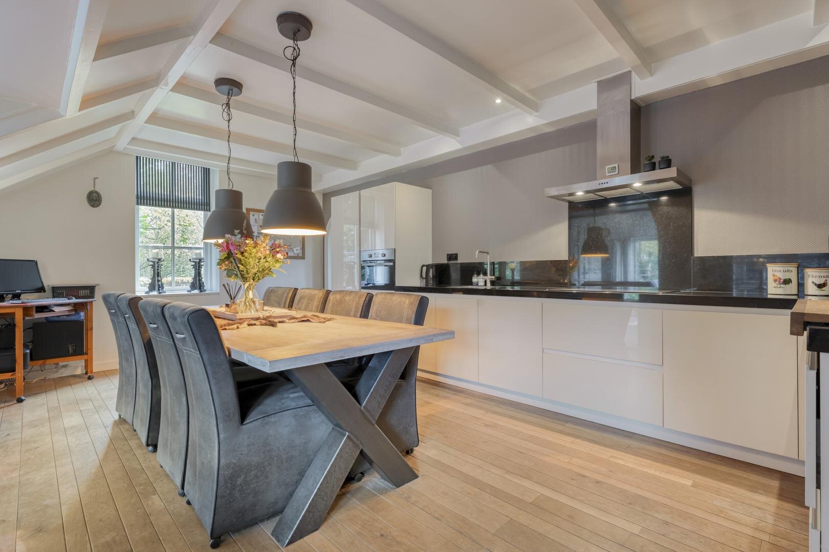 Binnen biedt de boerderij een ruim en comfortabel woonprogramma met in totaal vijf slaapkamers en twee badkamers, waardoor het huis uitstekend geschikt is voor een groot gezin of voor mensen die extra ruimte zoeken voor werken aan huis of gasten. Overal in en rond de woning is te zien dat er met aandacht is gewerkt aan het behoud van sfeer en kwaliteit.