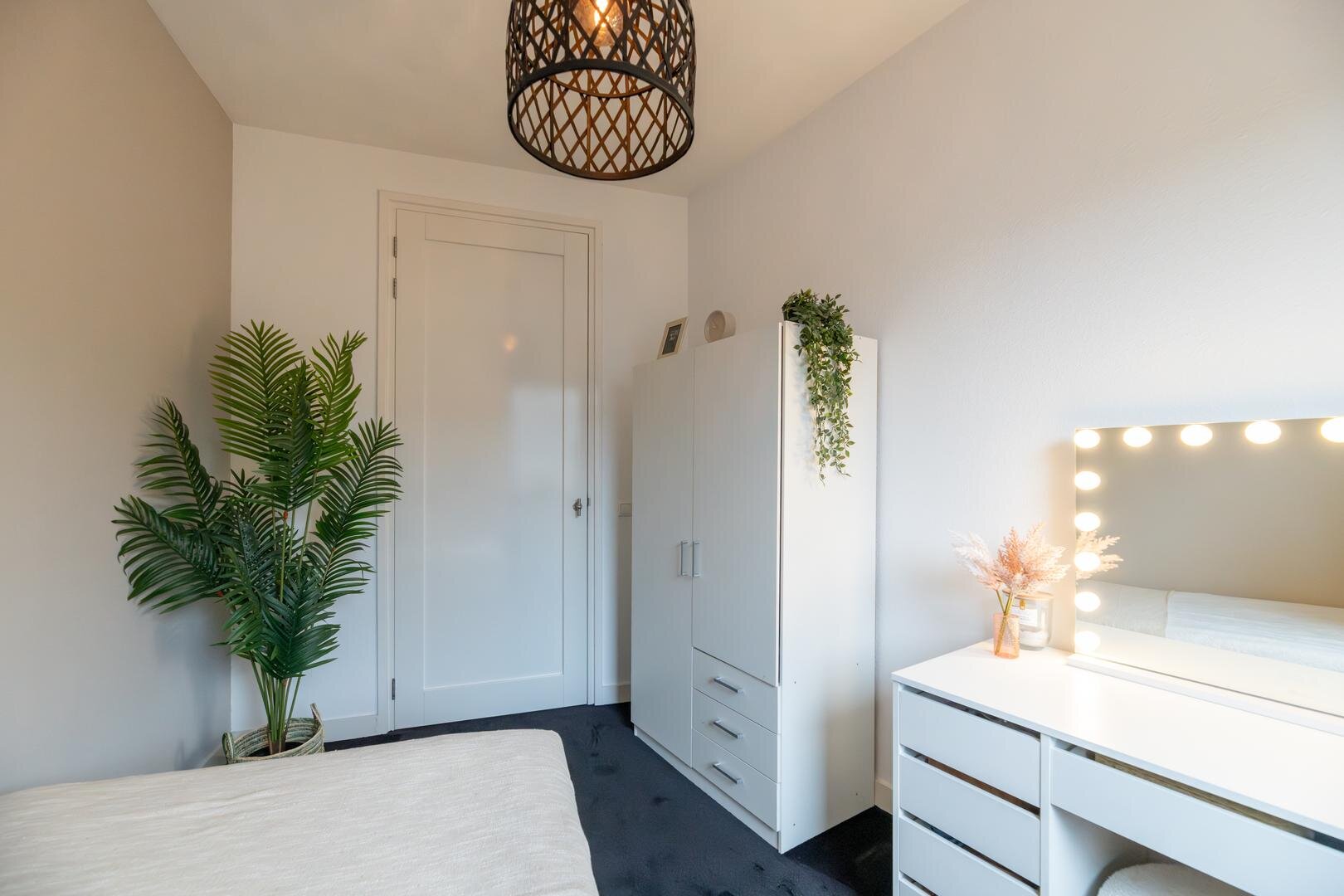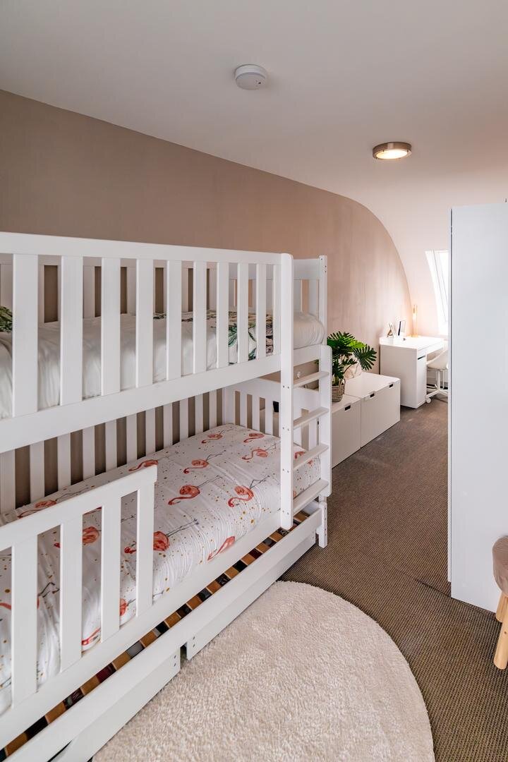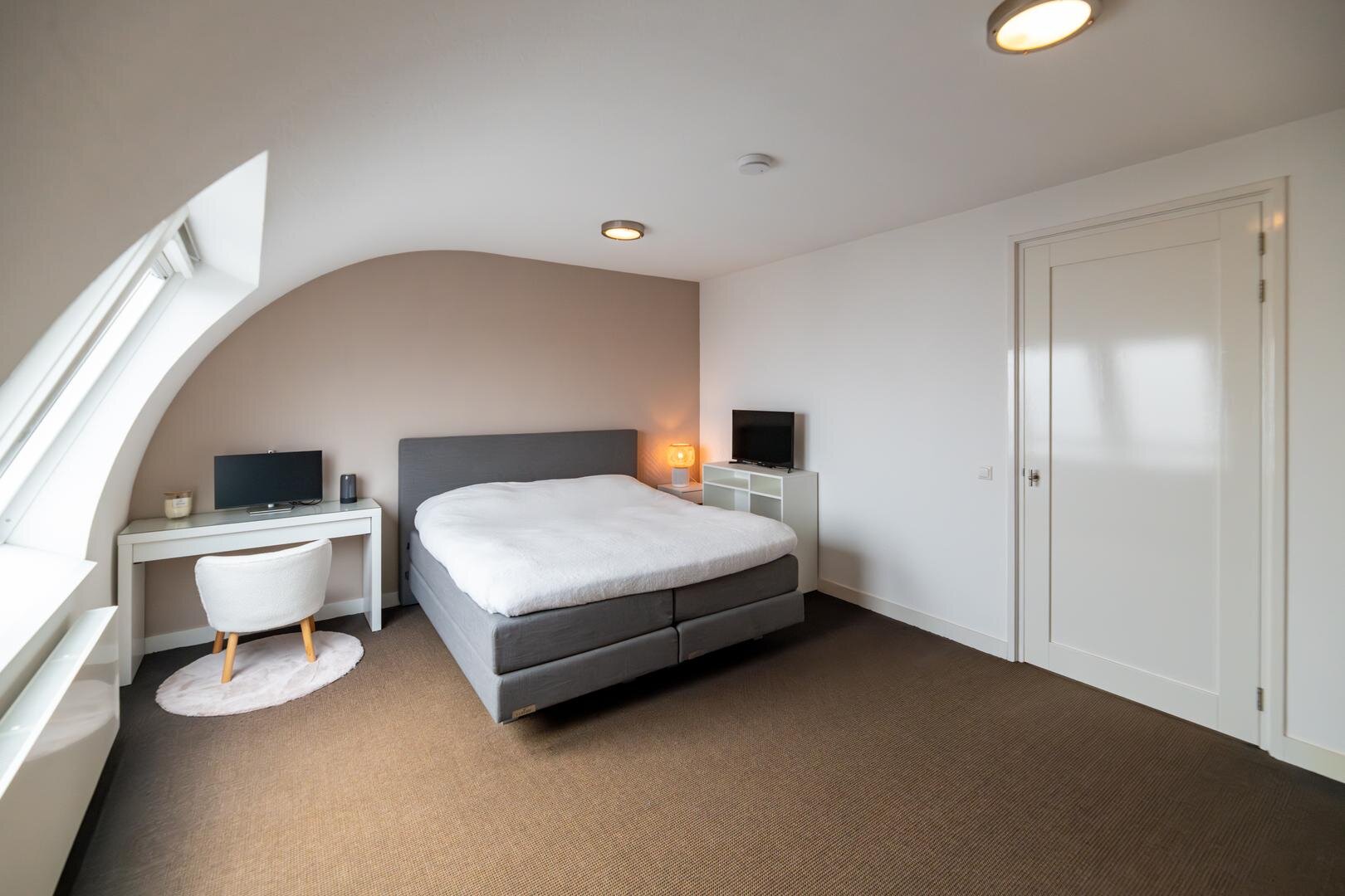 De slaapkamers zijn royaal van formaat, waarbij één slaapkamer beschikt over een inpandig balkon. Daarnaast zijn er twee volledig luxe afgewerkte badkamers, wat zorgt voor extra comfort en privacy.