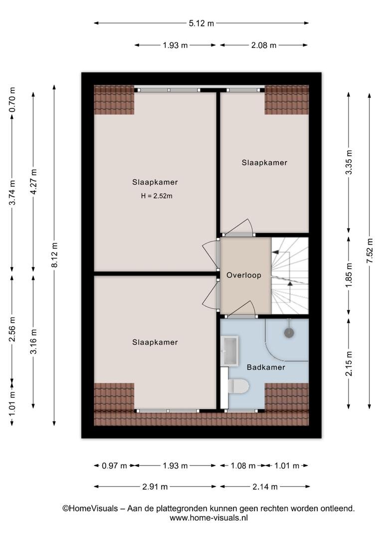 Tweede verdieping: Overloop. Berging. Vierde slaapkamer.