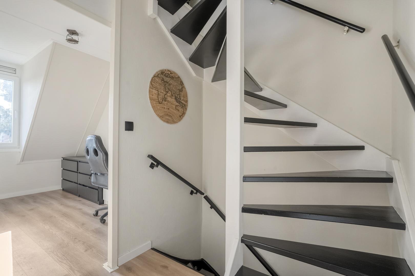 De woonkamer is licht en comfortabel en staat in verbinding met de keuken, die in 2022 is vernieuwd en is voorzien van moderne apparatuur. Vanuit de woonkamer is er een prettige verbinding met de achtertuin. De ruime tuin ligt op het zuiden, waardoor u hier vrijwel de hele dag van de zon kunt genieten. Door de grootte van het perceel is er volop ruimte voor een terras, een speelplek voor kinderen of een groene tuin voor liefhebbers van buitenleven. Op de verdiepingen bevinden zich in totaal vier slaapkamers, wat de woning zeer geschikt maakt voor gezinnen of voor wie extra ruimte zoekt voor een werk- of hobbykamer.