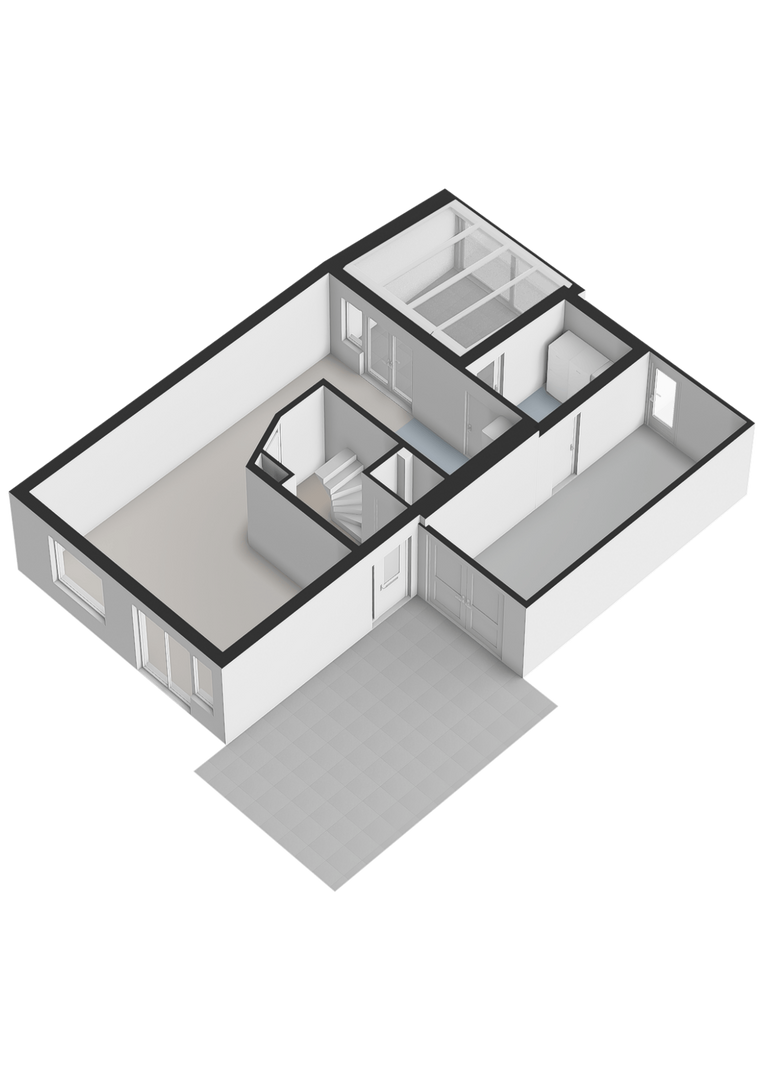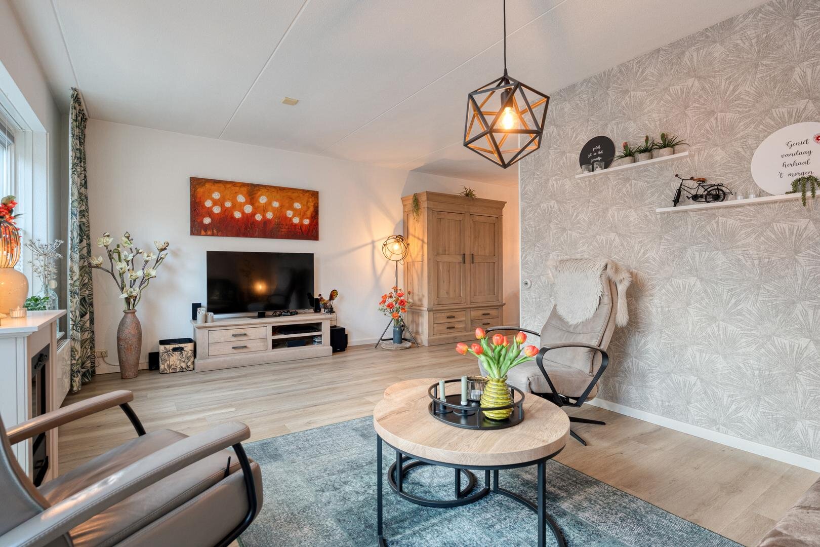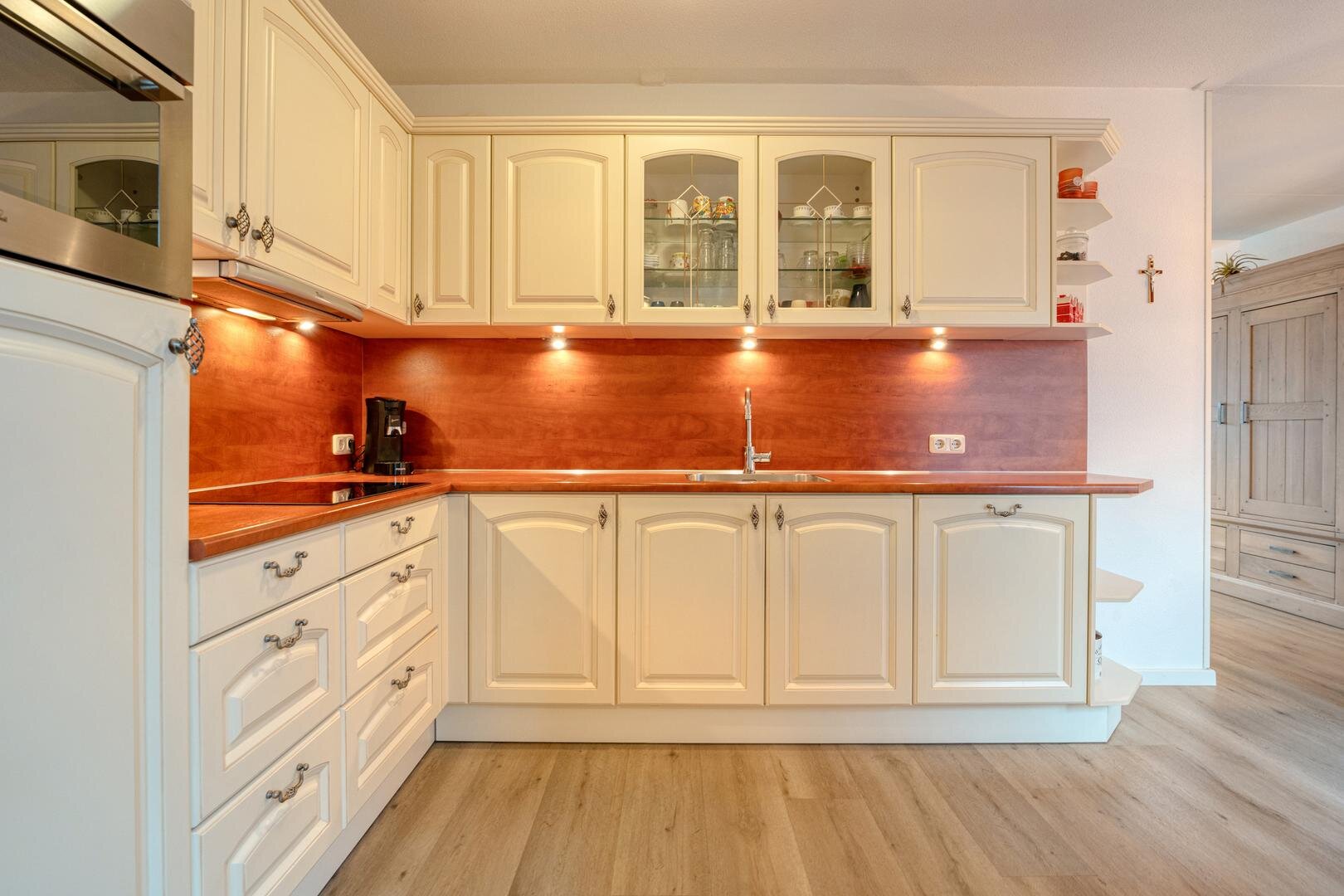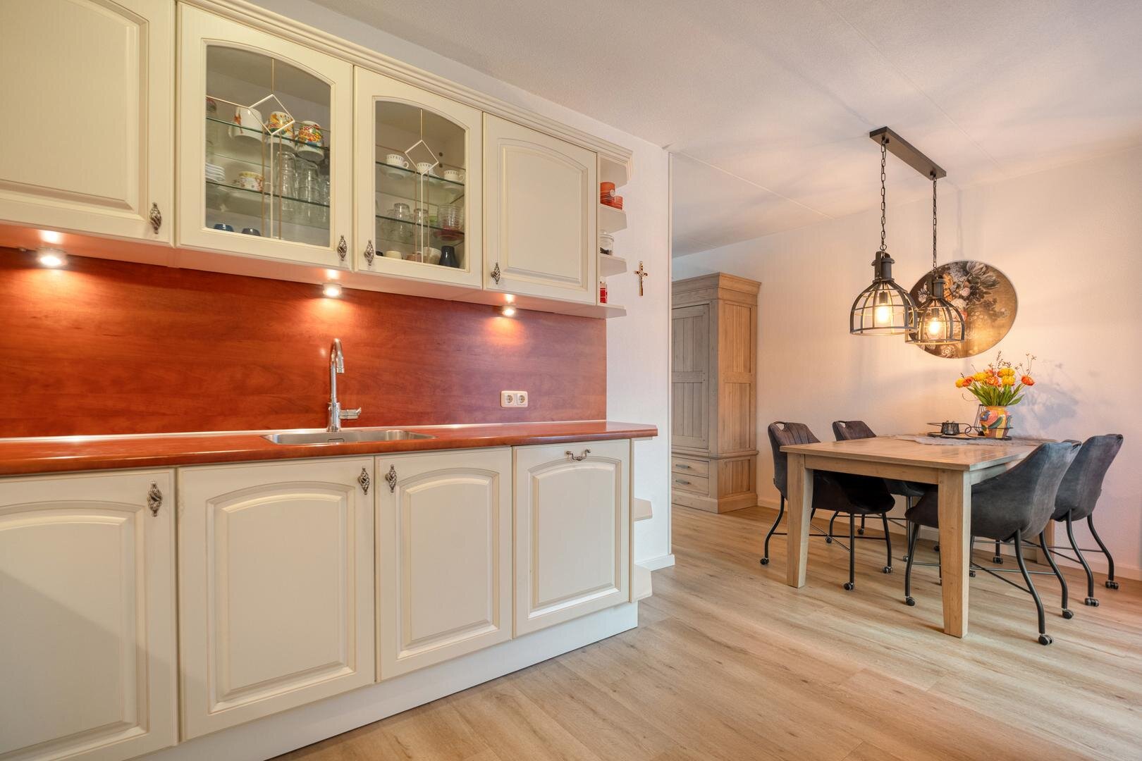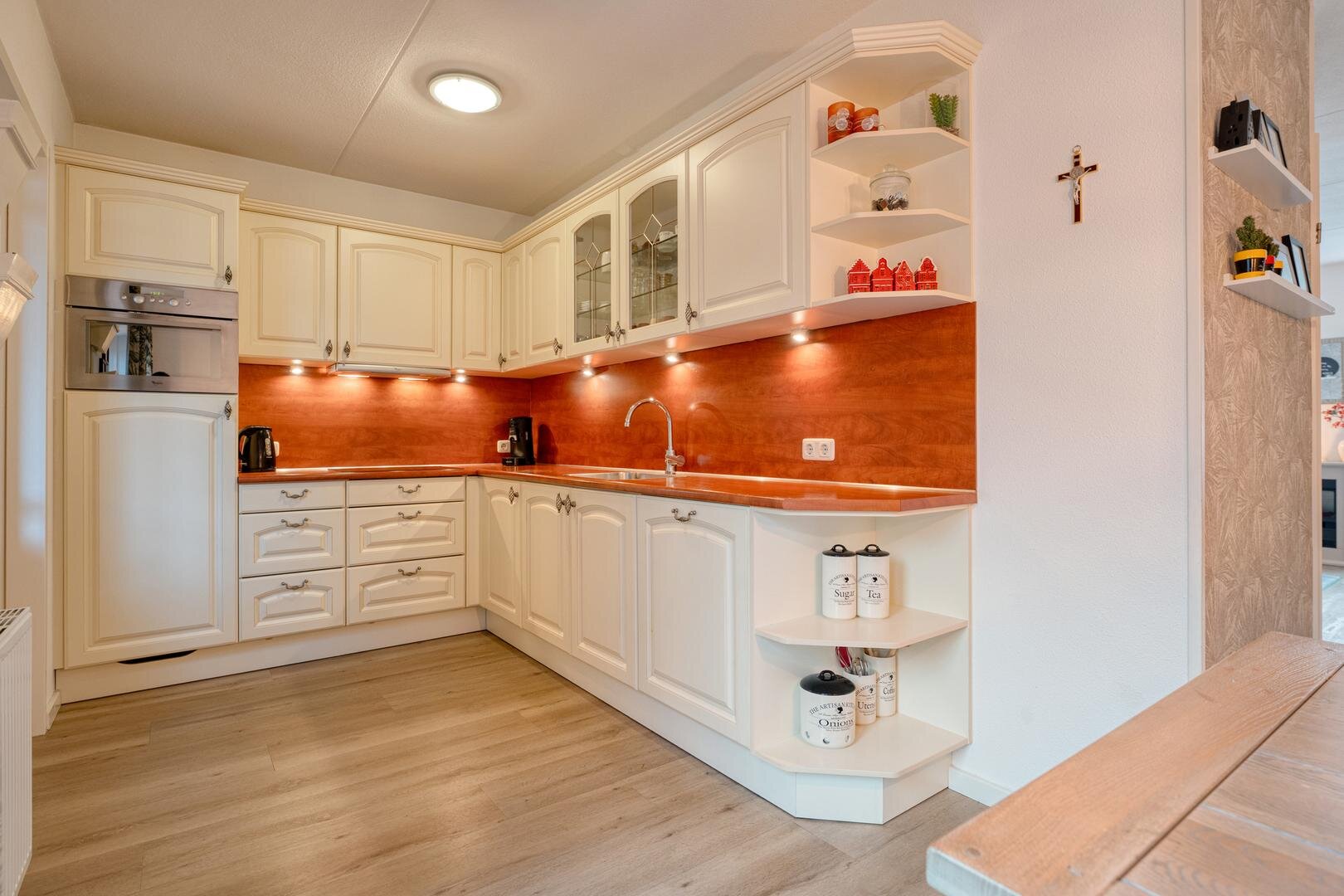 Begane grond: Entree met toilet en trap naar de eerste verdieping. L-vormige woonkamer voorzien van pvc-vloer en vloerverwarming. Open keuken voorzien van inductiekookplaat, vaatwasser(2025), combi-oven en via de terrasdeuren naar de serre met uitzicht op de tuin. Bijekeuken met wasmachineaansluiting. Garage.
