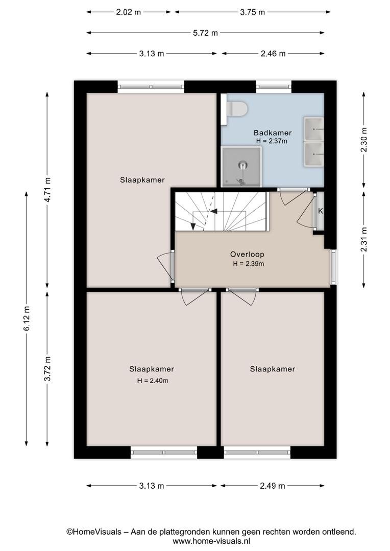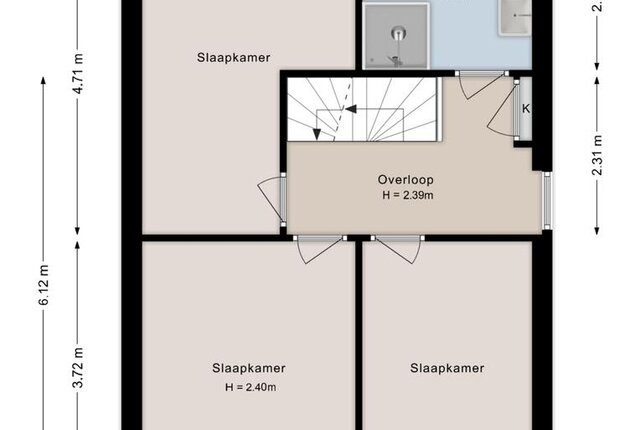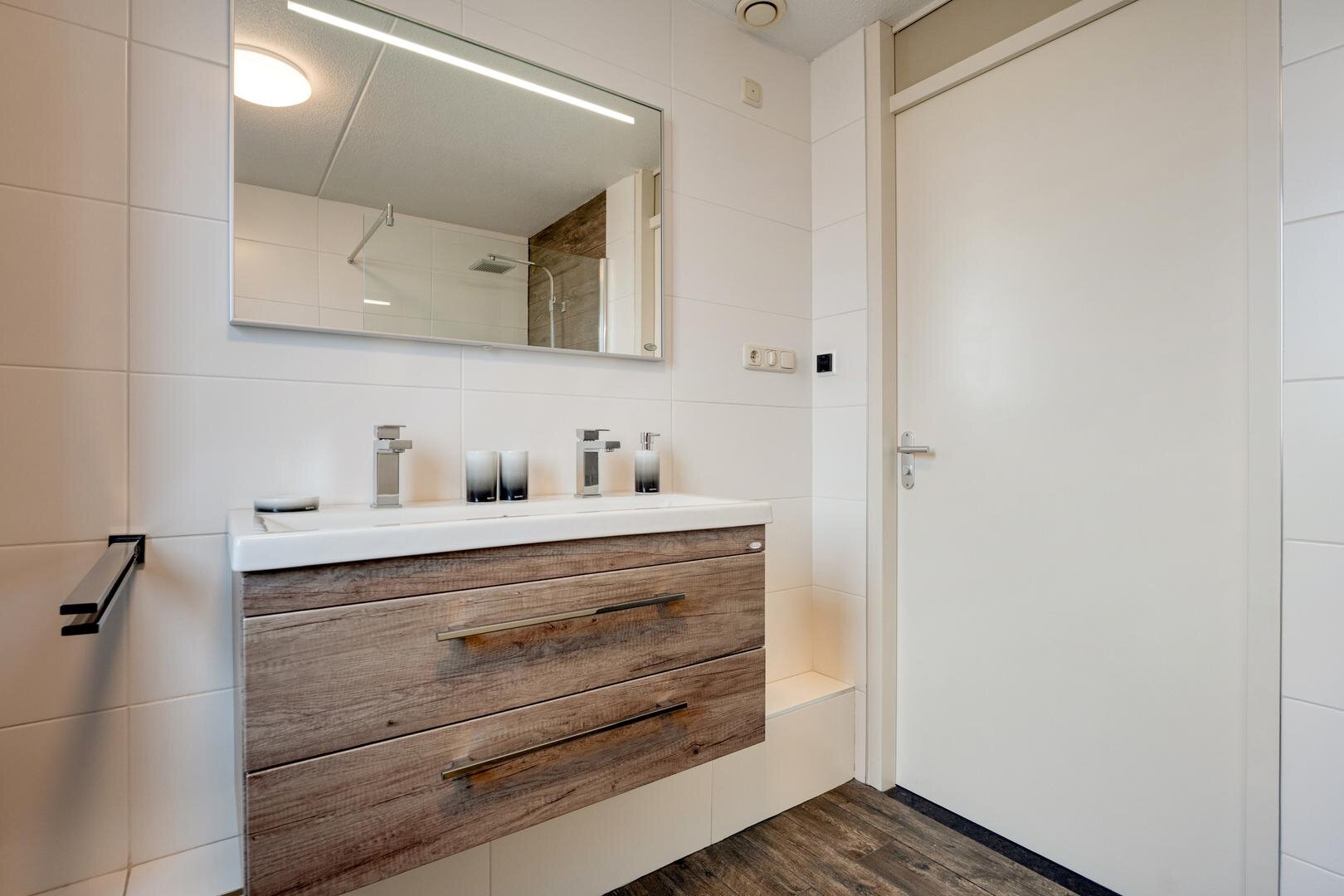 Eerste verdieping: Overloop. Drie ruime slaapkamers. Badkamer voorzien van dubbele wastafel, douche en toilet.