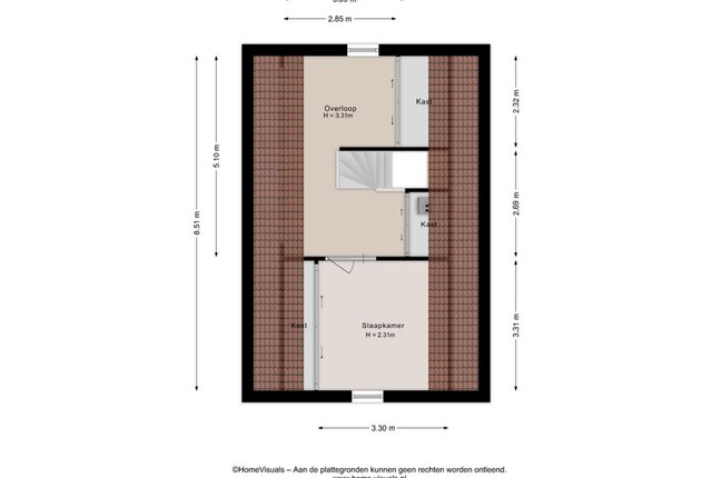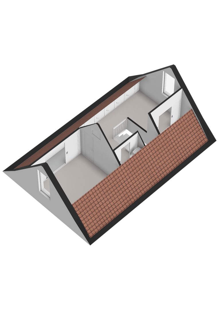 Tweede verdieping: Overloop. Vierde slaapkamer met vaste kast.