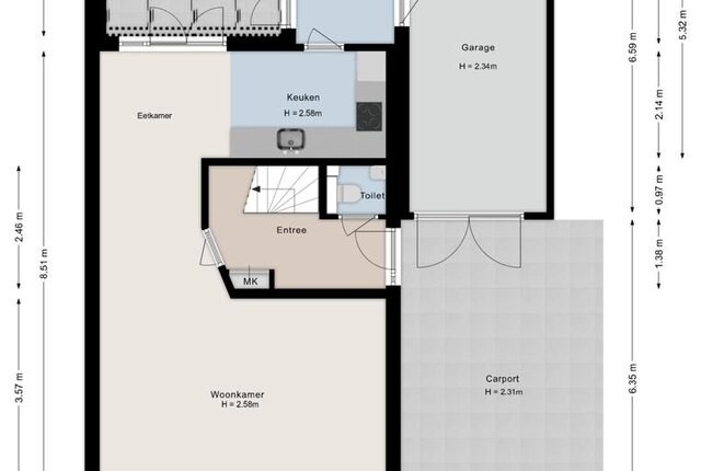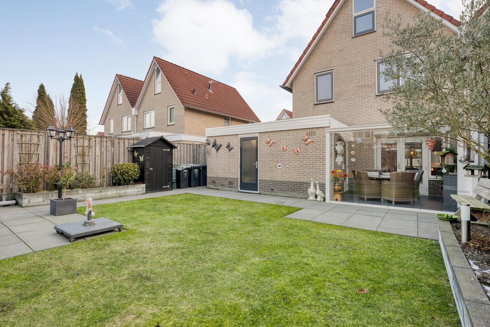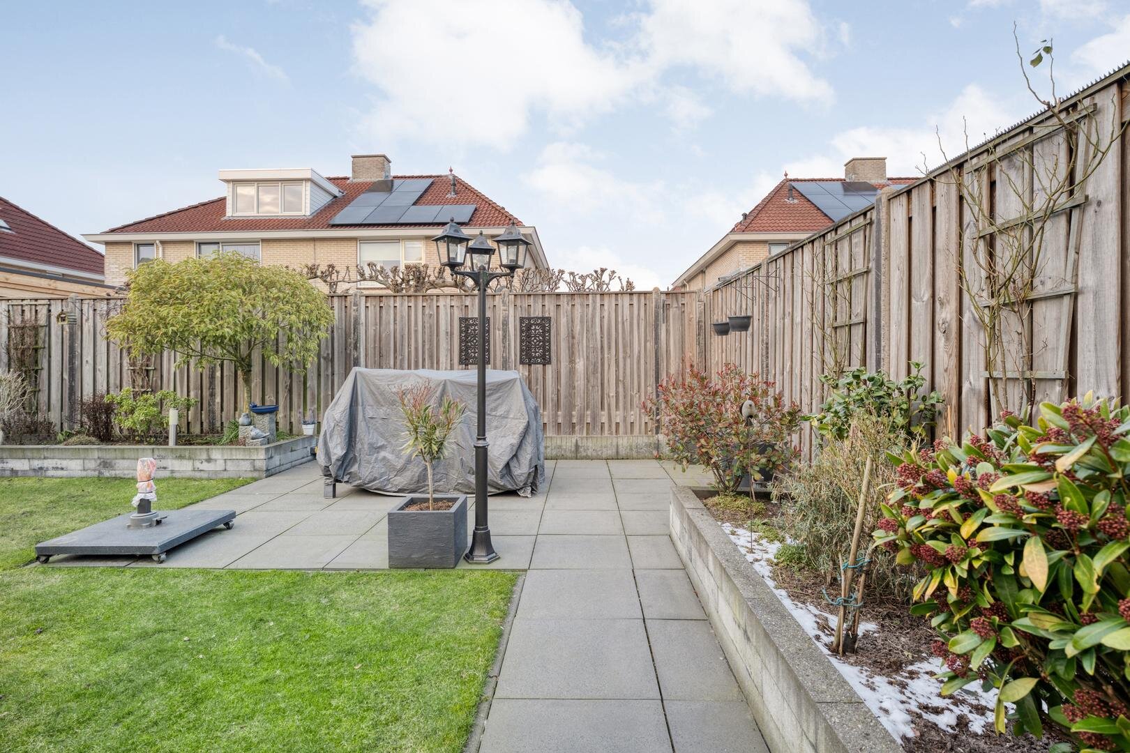 Het perceel van 265 m² beschikt over een fraai aangelegde, ruime achtertuin op het noordwesten, waar u heerlijk kunt genieten van de middag- en avondzon. De tuin is bereikbaar via een achterom en biedt volop ruimte om comfortabel buiten te leven. De garage en carport maken het geheel compleet en zorgen voor praktische extra bergruimte en parkeergelegenheid.