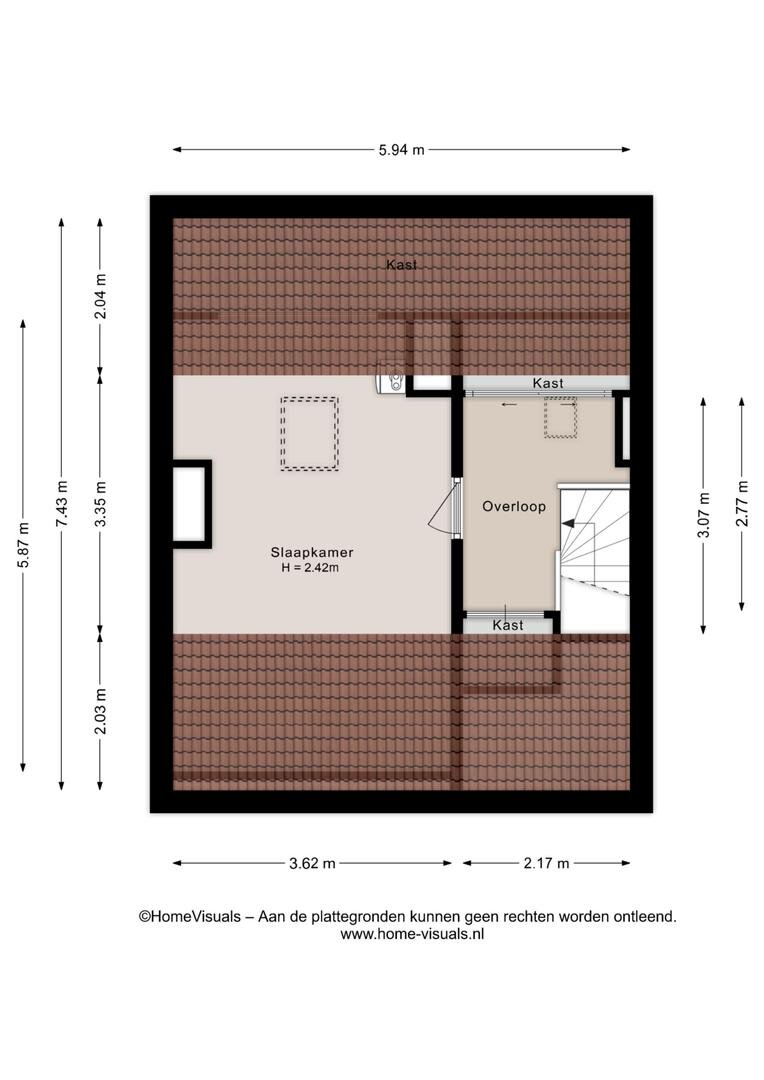 Tweede verdieping: Overloop. Bergruimte. Eventueel een extra slaapkamer voorzien van een dakraam. CV-ketel.