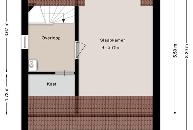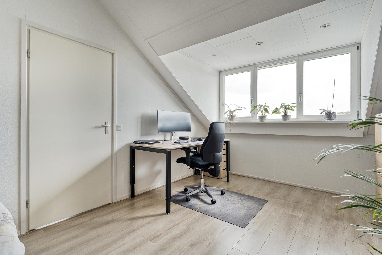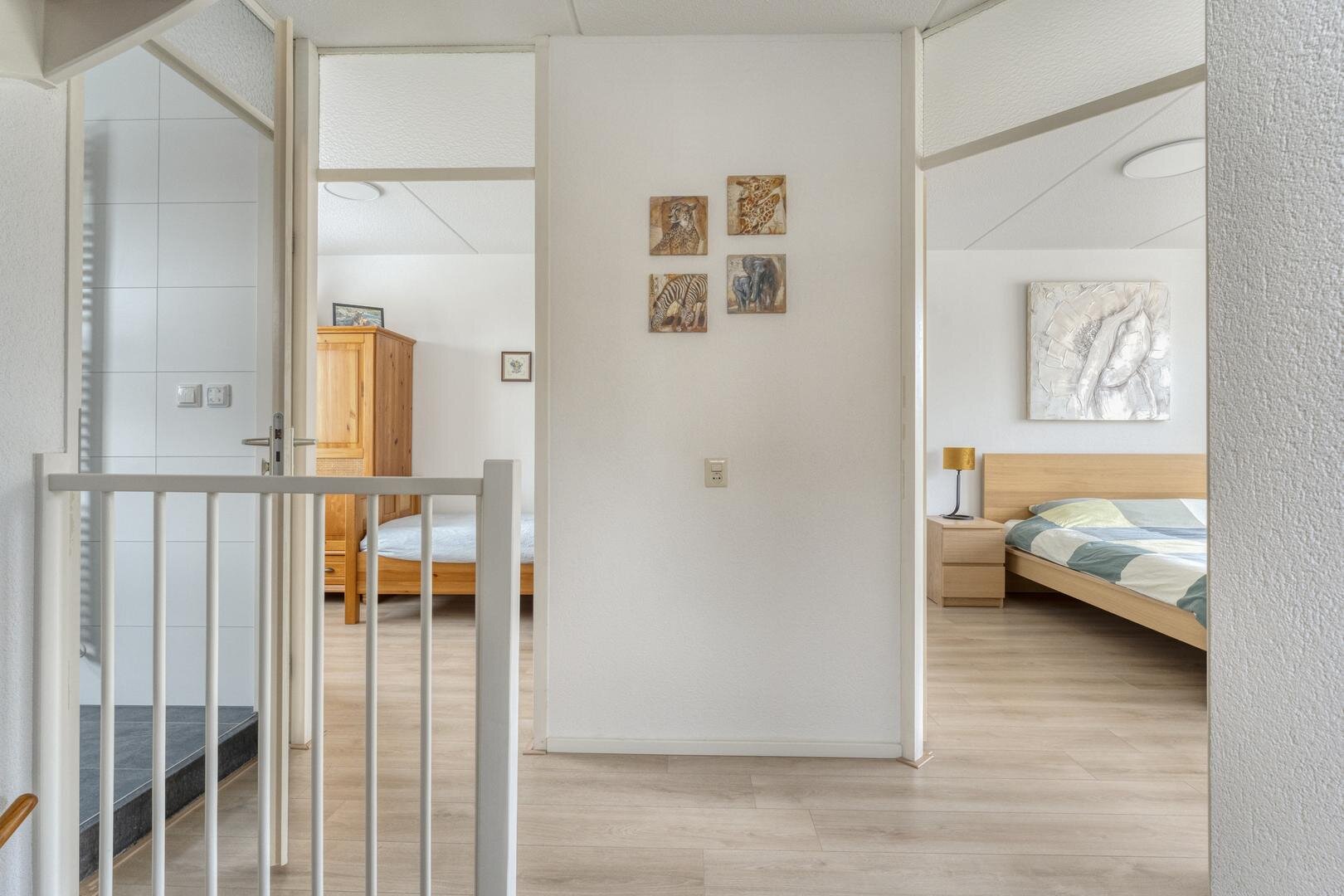 Tweede verdieping: overloop. 4e Slaapkamer met laminaatvloer en dakkapel. Mechanische ventilatie en cv-ketel (cw5).