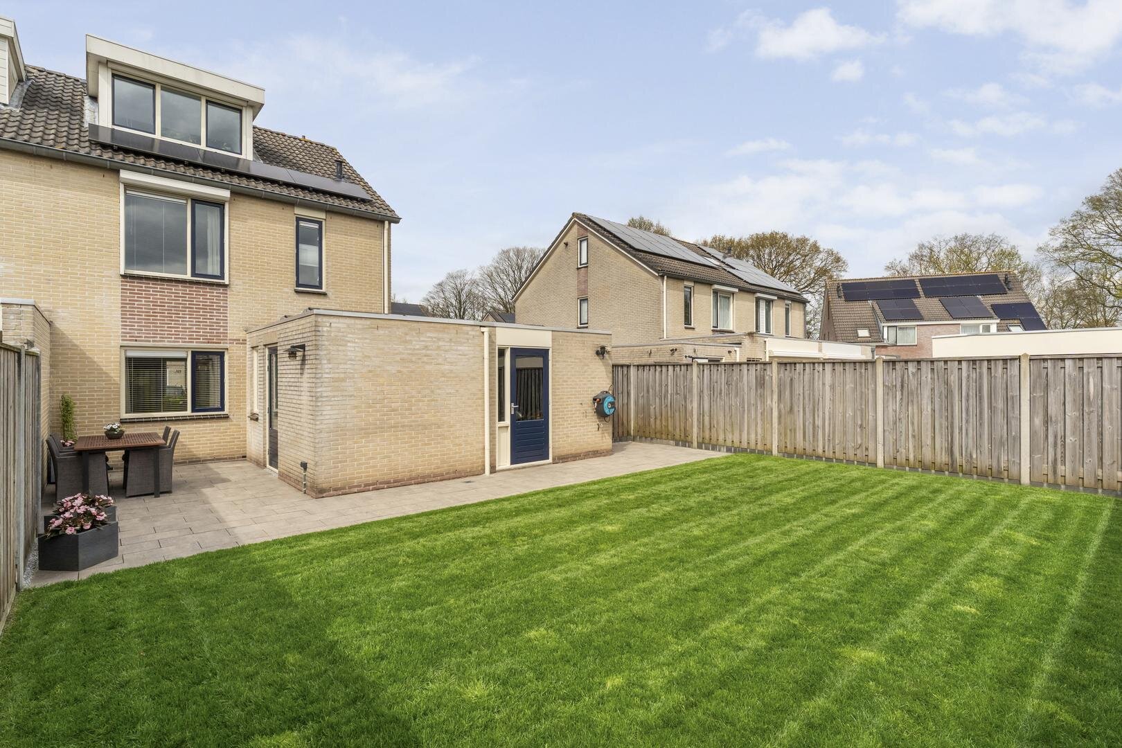 Ook buiten heeft deze woning veel te bieden. De verlengde garage is voorzien van een elektrische deur en wordt aangevuld met een carport, waardoor je altijd beschikt over praktische parkeergelegenheid en extra bergruimte. De tuin biedt voldoende ruimte om te genieten van het buitenleven en is een fijne plek om te ontspannen.