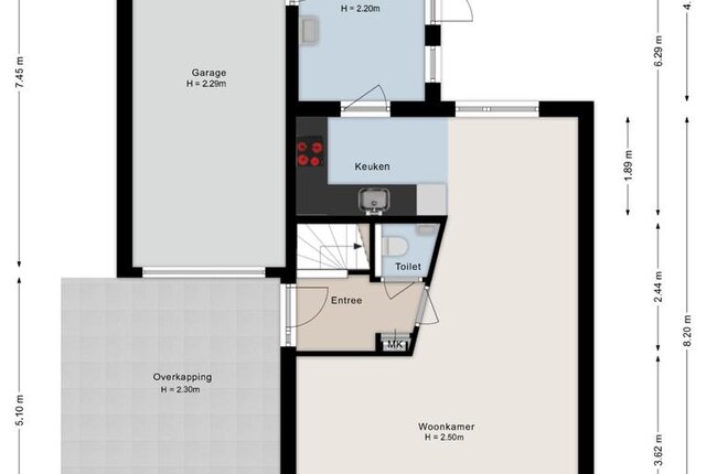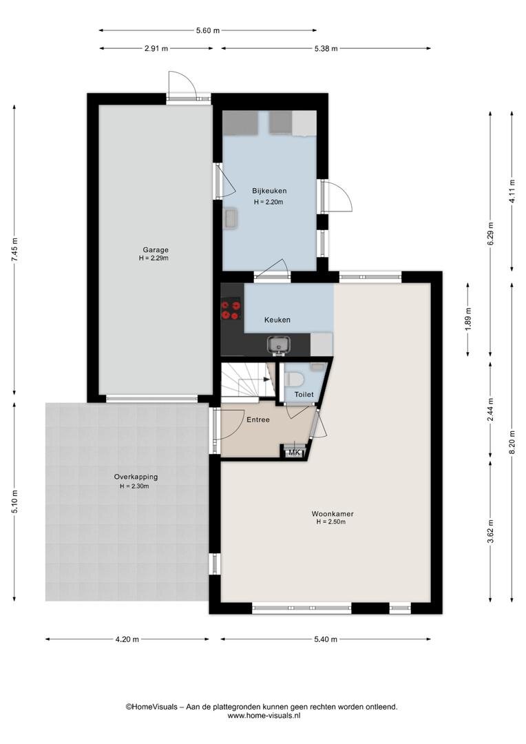 Begane grond: hal/entree met toilet. Woonkamer met parketvloer (geschuurd en geolied in 2026). Keuken voorzien van een inductiekookplaat met afzuigkap, koelkast, combi-oven en een vaatwasser. Bijkeuken met wasmachineaansluiting, stortbak en achterdeur naar de tuin. Garage met elektrische deur, omvormer en betonvloer.