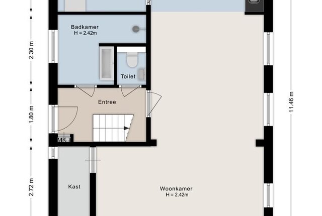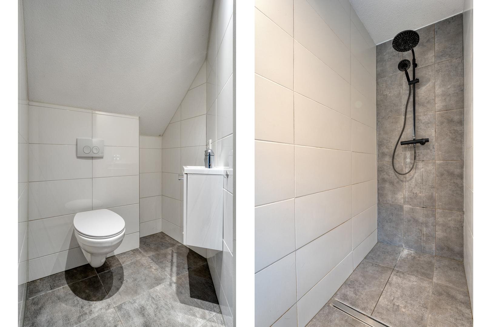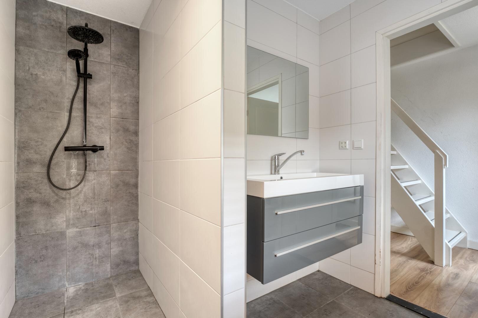 Begane grond: hal/entree met toilet. Badkamer voorzien van een wastafel met meubel en een inloopdouche.