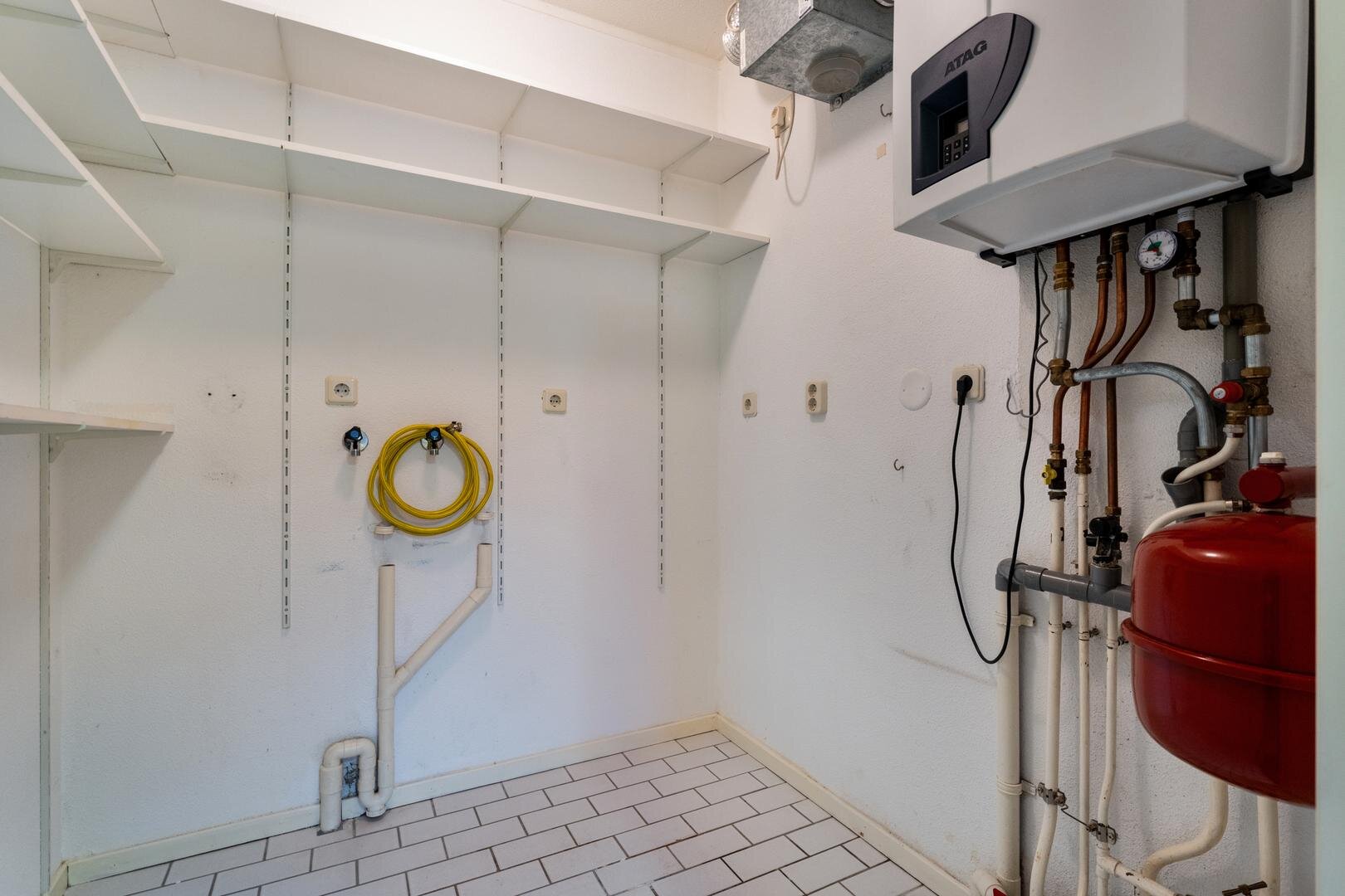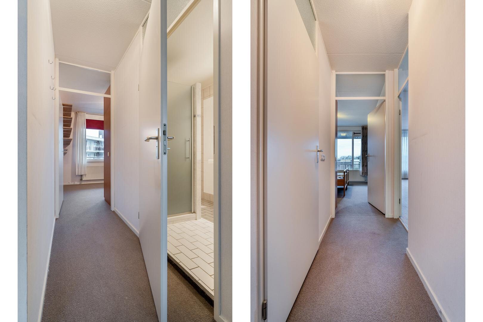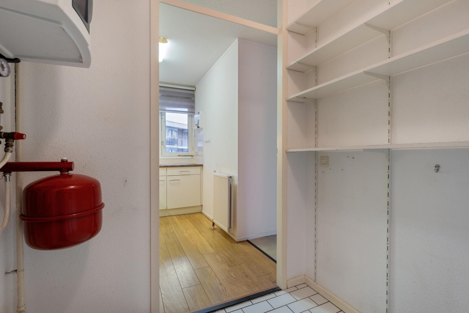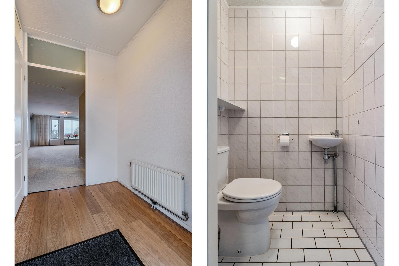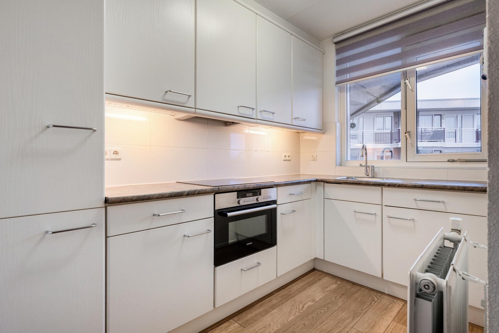 Entree met toilet. L-vormige en ruime woonkamer met uitzicht over een deel van Coevorden. Keuken voorzien van inbouwapparatuur; o.a. combi-oven, koelkast, inductiekookplaat en afzuigkap. Berging met wasmachineaansluiting.