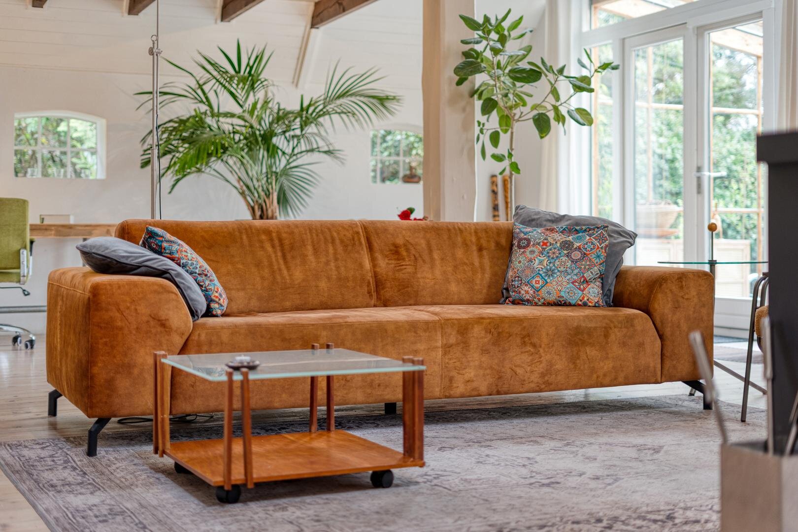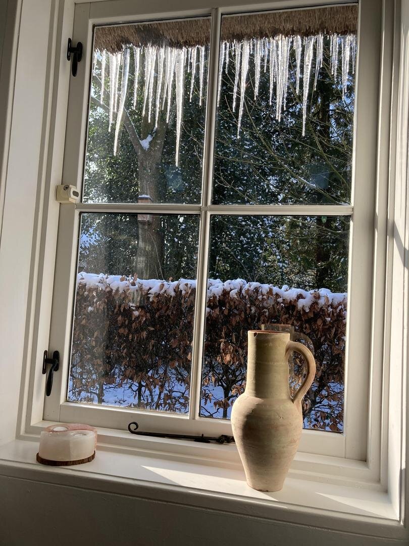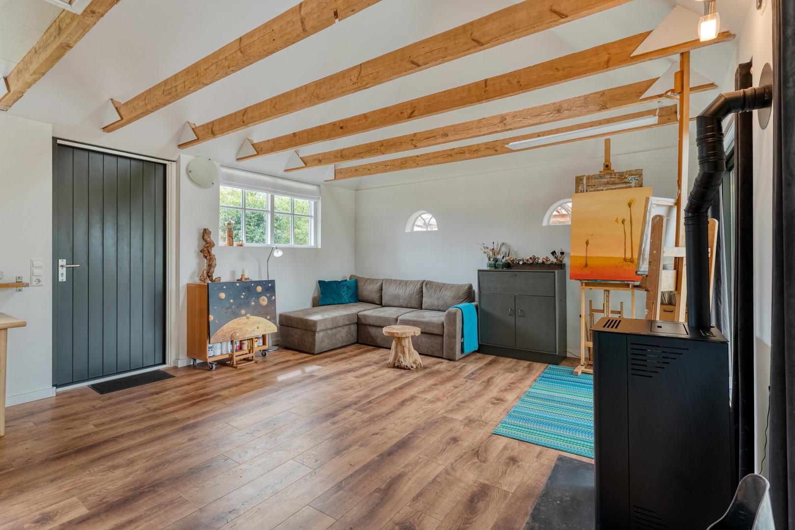In de winter zit je heerlijk comfortabel bij de houtkachel in de ruime en sfeervolle woonkamer. Ook het gastenverblijf/atelier en de serre zijn fijne plekken om te verblijven.