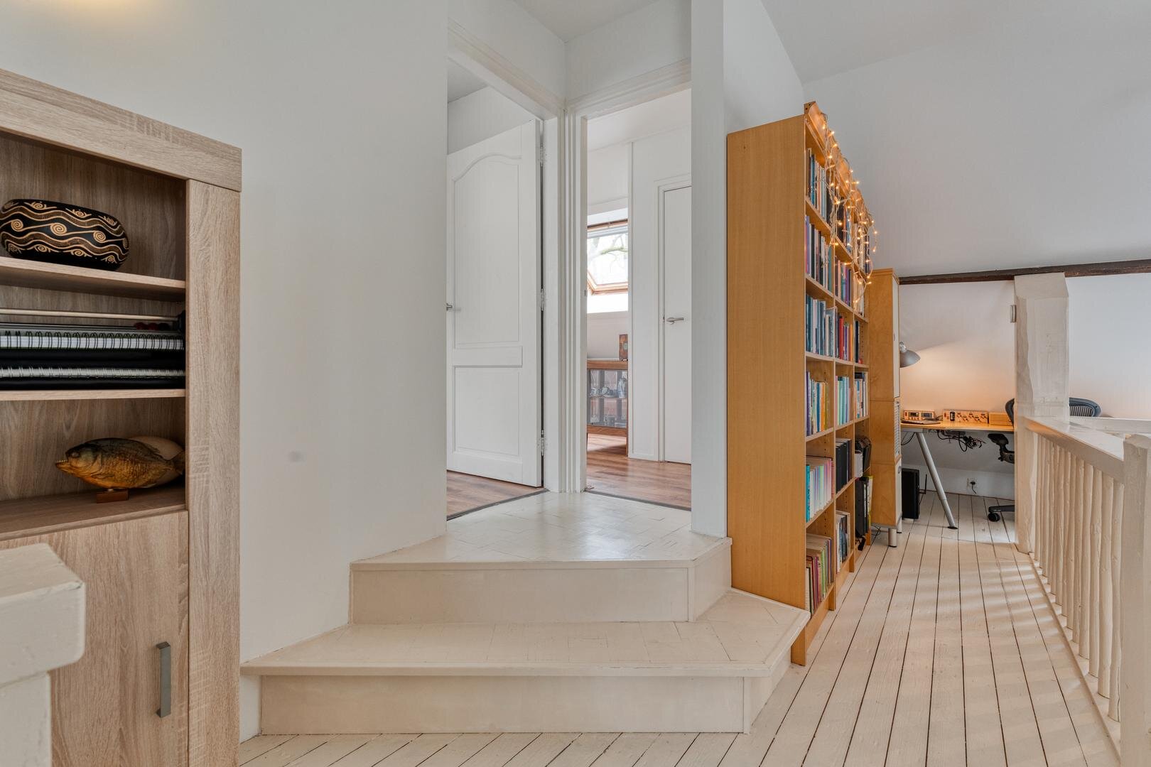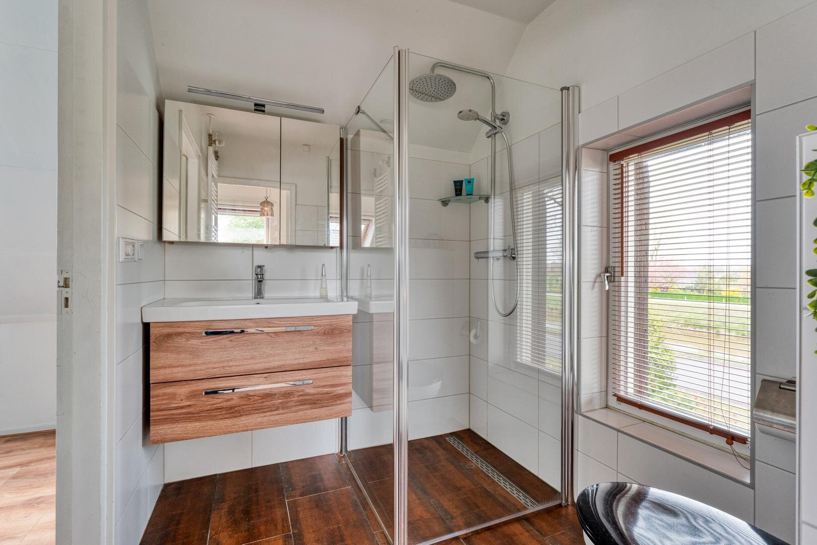 Eerste verdieping: Vide met uitzicht op de benedenverdieping. Twee ruime slaapkamers voorzien van dakramen en vaste kasten. Badkamer uit 2020 voorzien van douche, toilet en wastafelmeubel.