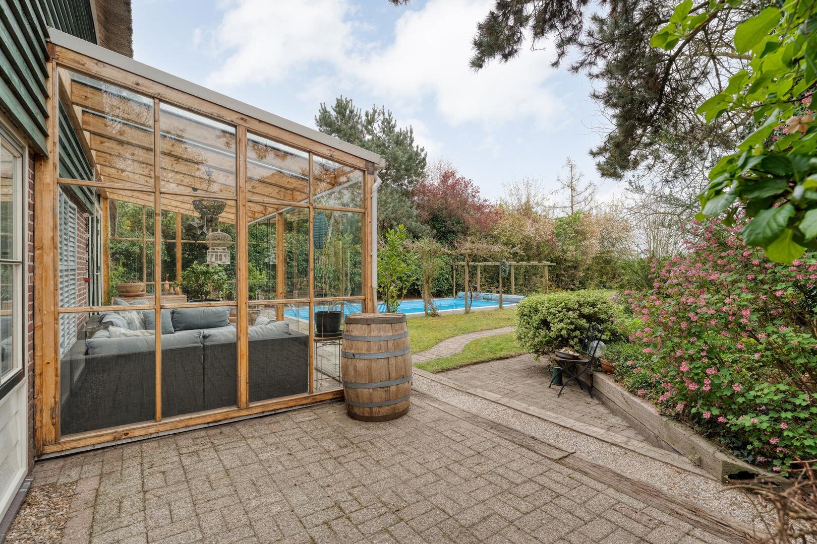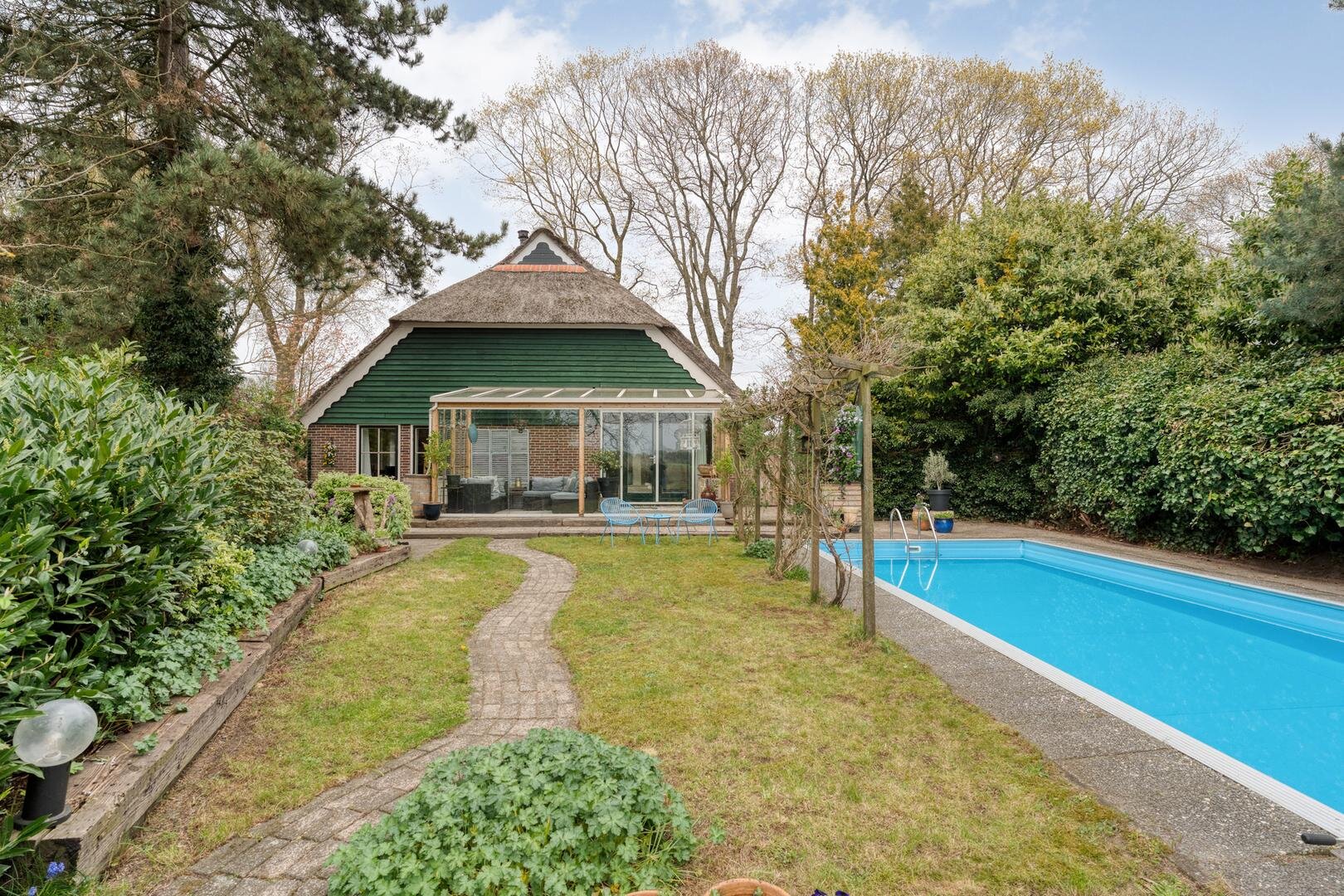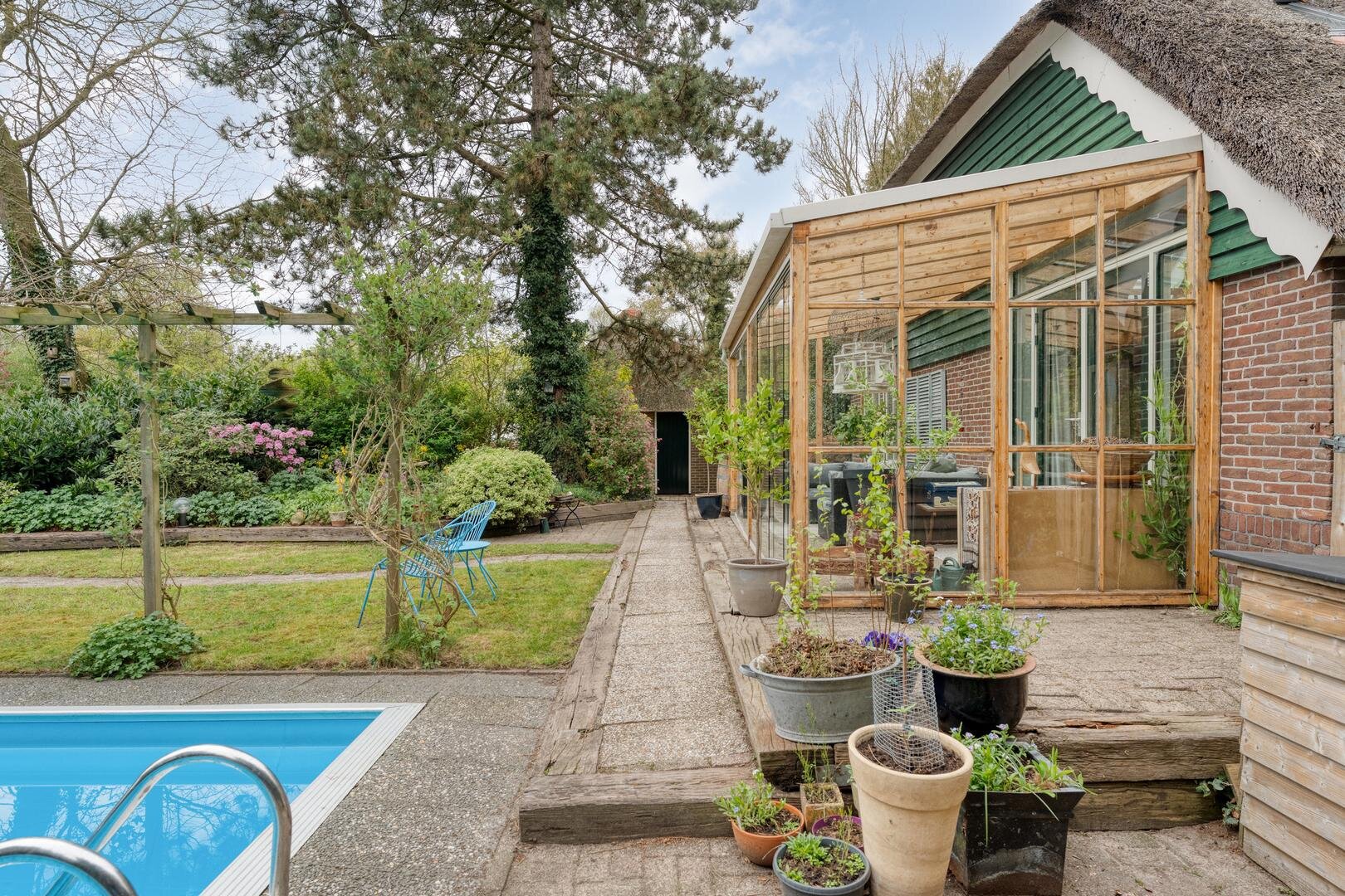 Hier ervaar je het buitenleven in optima forma, met een zwembad, moestuin, houten blokhut met overkapping en een natuurvijver die zorgen voor een ontspannen en veelzijdige leefomgeving. Verspreid over het ruime perceel vind je diverse bomen zoals appel, hazelaar en druif, aangevuld met een voedselbos dat bijdraagt aan een duurzame en groene leefstijl. Dit geheel maakt het een heerlijke plek om te wonen.