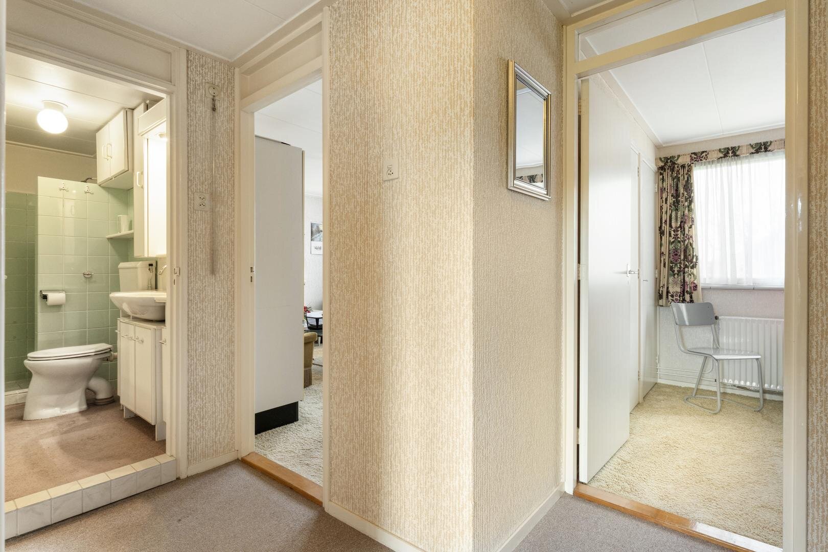 De tuin aan de achterzijde is volledig afsluitbaar en biedt volop privacy. Aan de voorzijde geniet je van het uitzicht op het groen, terwijl sportvelden en wandelmogelijkheden zich binnen tien minuten bevinden. De oprit en de garage bieden voldoende parkeergelegenheid, ook voor bezoekers. De locatie combineert rust met gemak: een supermarkt, basisschool en sportvoorzieningen liggen op korte afstand, en het centrum van Coevorden met zijn gezellige winkels en voorzieningen is binnen enkele minuten bereikbaar per fiets of te voet.
