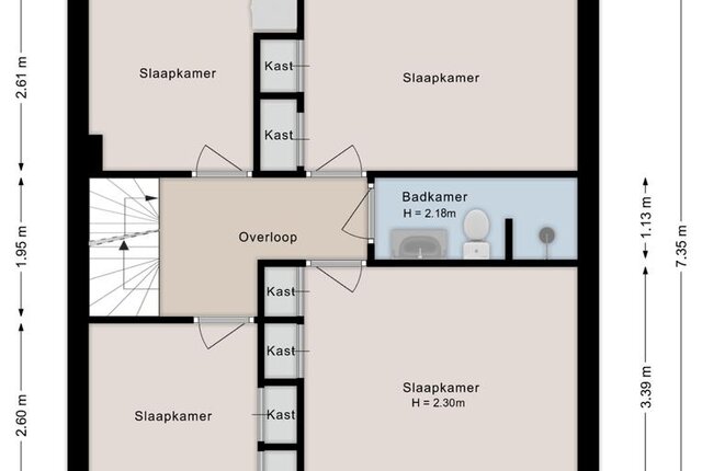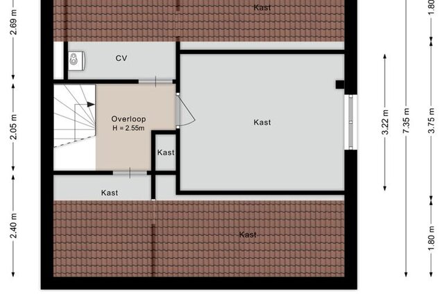 Tweede verdieping: cv-ketel, berging en 4e slaapkamer.