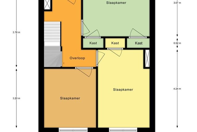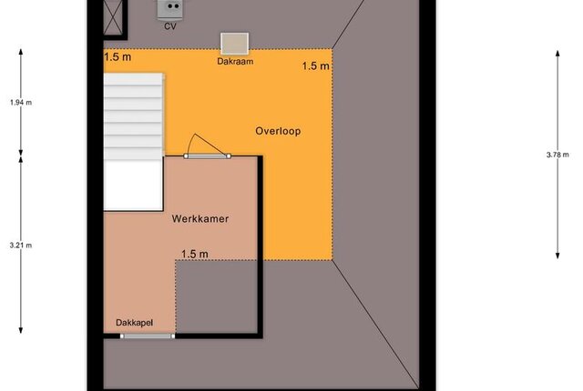 Tweede verdieping: Overloop. Vierde slaapkamer met dakkapel.