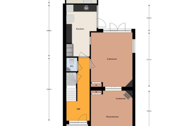Begane grond: Hal/entree met glas-in-lood raam, authentieke granietvloer, toegang tot de kelder. toilet en meterkast. Woonkamer met houten vloer, schouw met voorbereiding voor houtkachel en kamer-en-suitedeuren voorzien van glas-in-loodramen. Eetkamer voorzien van open houten vloer, schouw en openslaande deuren naar het terras. Keuken met keukenblok. Berging met wasmachineaansluiting.