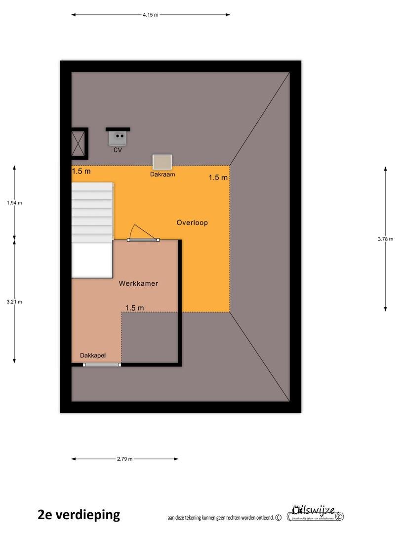 Tweede verdieping: Overloop. Vierde slaapkamer met dakkapel.
