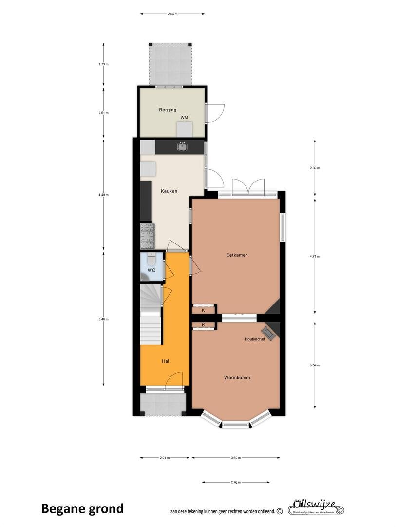 Begane grond: Hal/entree met glas-in-lood raam, authentieke granietvloer, toegang tot de kelder. toilet en meterkast. Woonkamer met houten vloer, schouw met voorbereiding voor houtkachel en kamer-en-suitedeuren voorzien van glas-in-loodramen. Eetkamer voorzien van open houten vloer, schouw en openslaande deuren naar het terras. Keuken met keukenblok. Berging met wasmachineaansluiting.