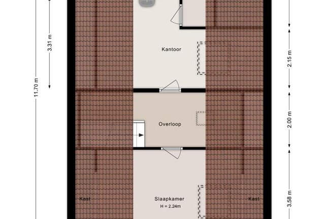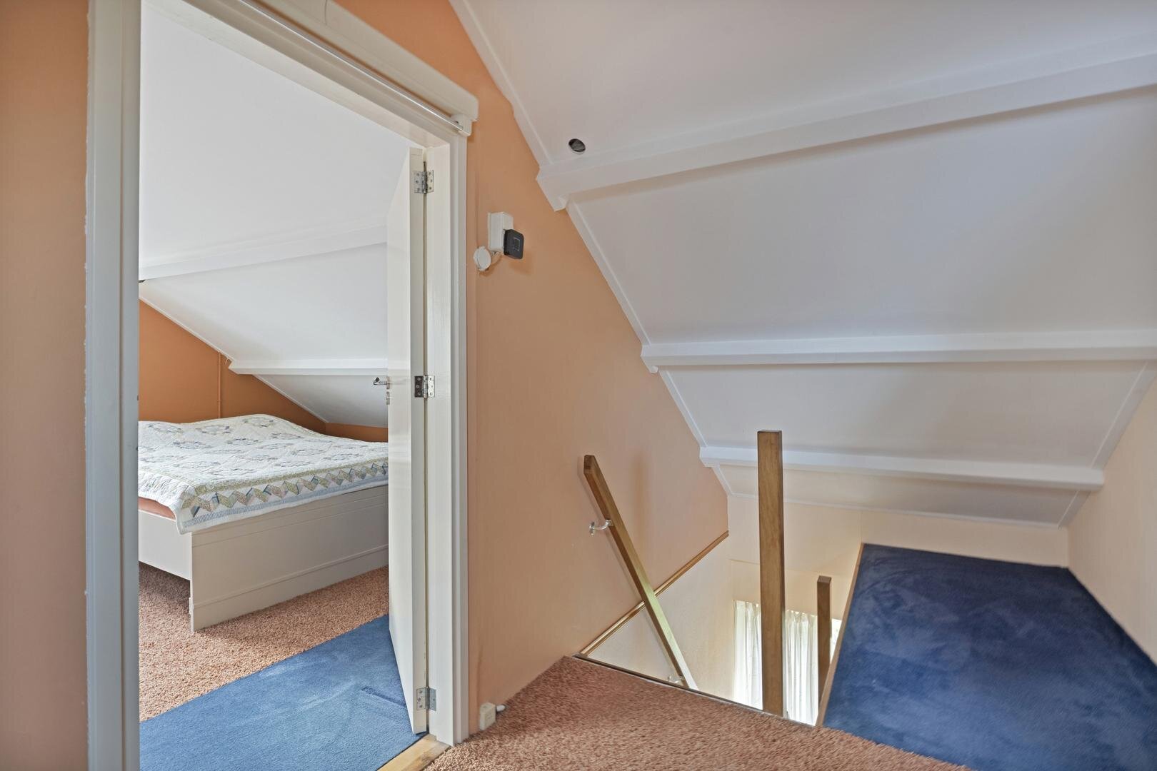 Eerste verdieping: Overloop met bergruimte. 2 slaapkamers.