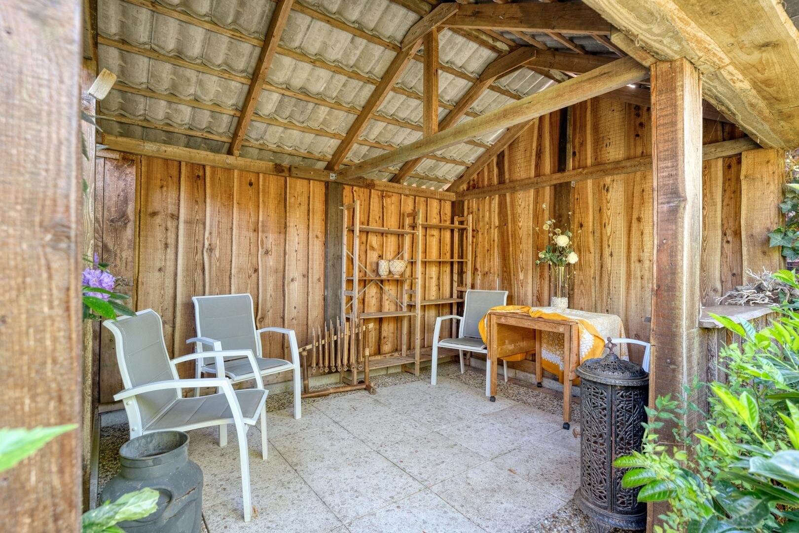 Het geheel staat op een royale kavel van maar liefst 817 m², waardoor er volop ruimte is rondom de woning. De tuin is verzorgd aangelegd en biedt diverse zitmogelijkheden, zodat er op ieder moment van de dag wel een fijne plek in de zon of schaduw te vinden is. Daarnaast beschikt de woning over een ruime houten schuur (35 m²), ideaal voor hobbyisten, klussers, het opbergen van tuingereedschap of het stallen van fietsen.