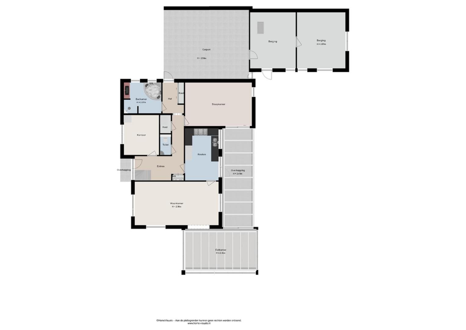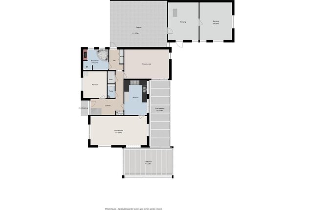 Begane grond: hal/entree met toilet. Doorzonwoonkamer in verbinding met de serre. Slaapkamer met vaste kast en schuifpui naar de tuin. Kantoor, welke als 2e slaapkamer gerealiseerd kan worden. Dichte keuken voorzien van vloerverwarming en inbouwapparatuur: vaatwasser, gaskookplaat, dubbele oven en koelkast. Badkamer voorzien van vloerverwarming, wastafel, inloopdouche, designradiator en whirlpool. Overkapping en schuur.