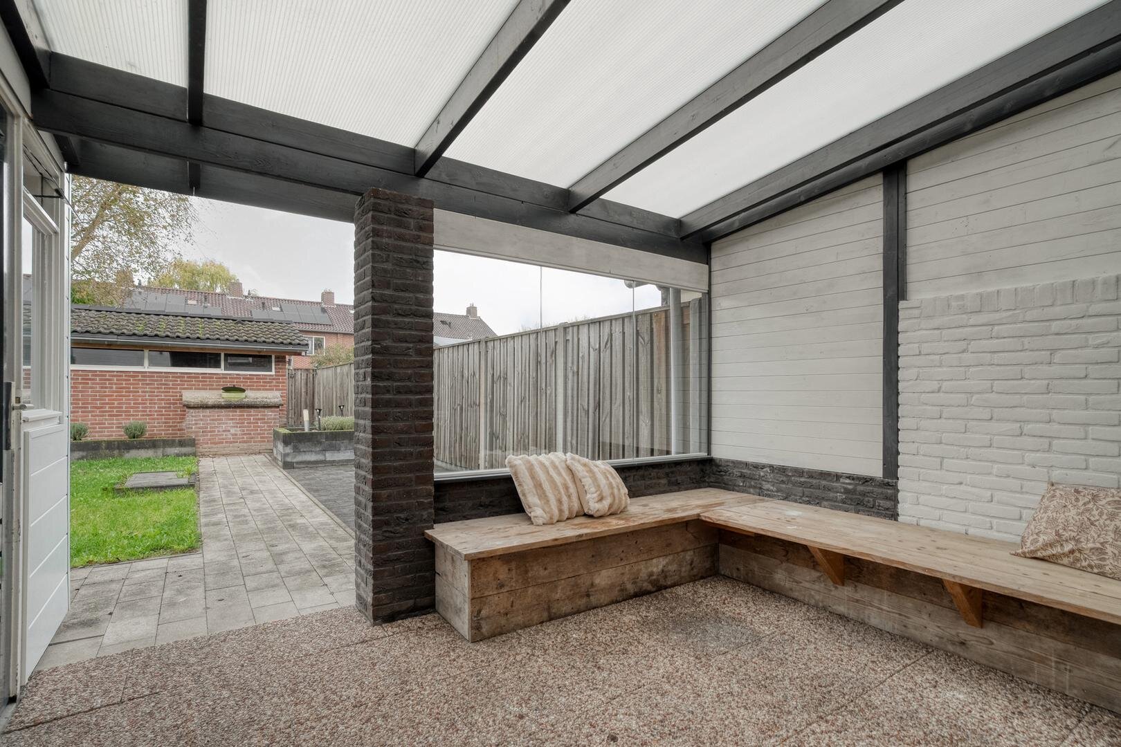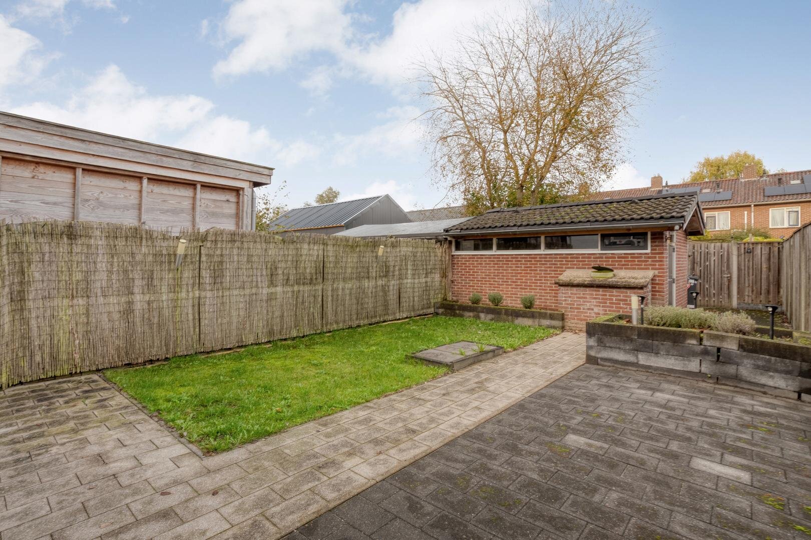 De achtertuin is fraai aangelegd en biedt onder de overkapping een fijne plek om buiten te ontspannen. Daarnaast zijn er twee bergingen (steen en hout), voor fietsen, tuingereedschap of extra bergruimte.