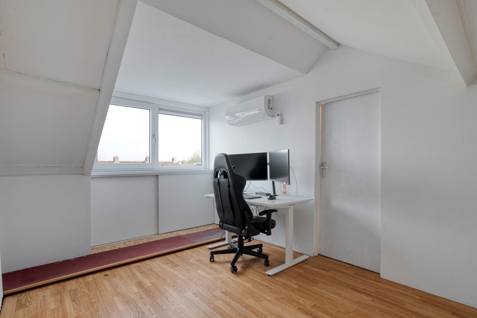 Tweede verdieping: overloop met omvormer. Vierde slaapkamer met dakkapel en airconditioning.