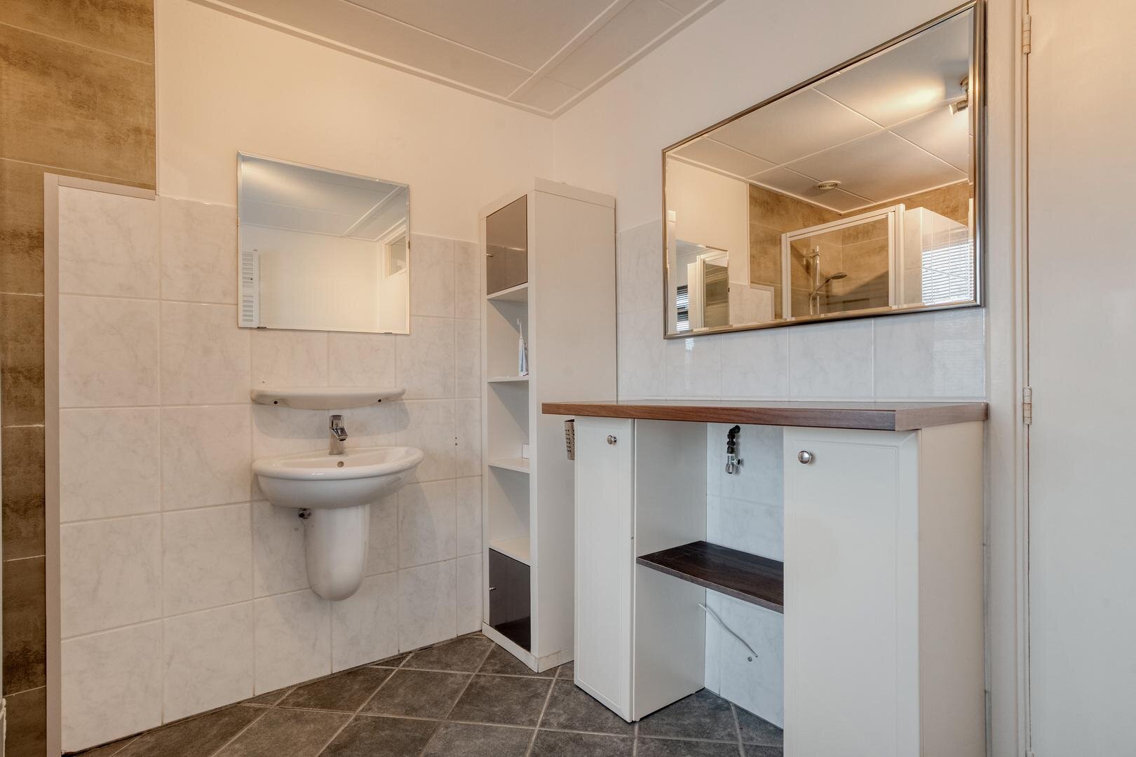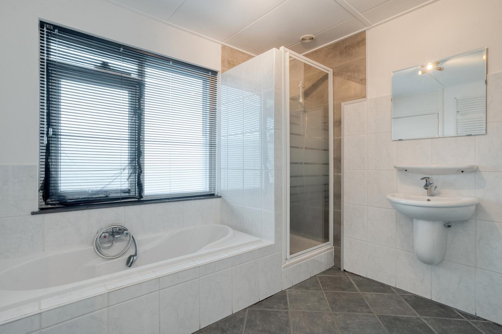 Eerste verdieping: overloop met airconditioning. 3 Slaapkamers voorzien van een vaste kast, laminaatvloer en rolluiken. Badkamer met ligbad, douche, wastafel en meubel en kast met cv-ketel.
