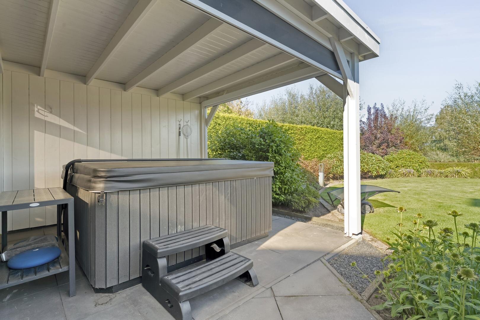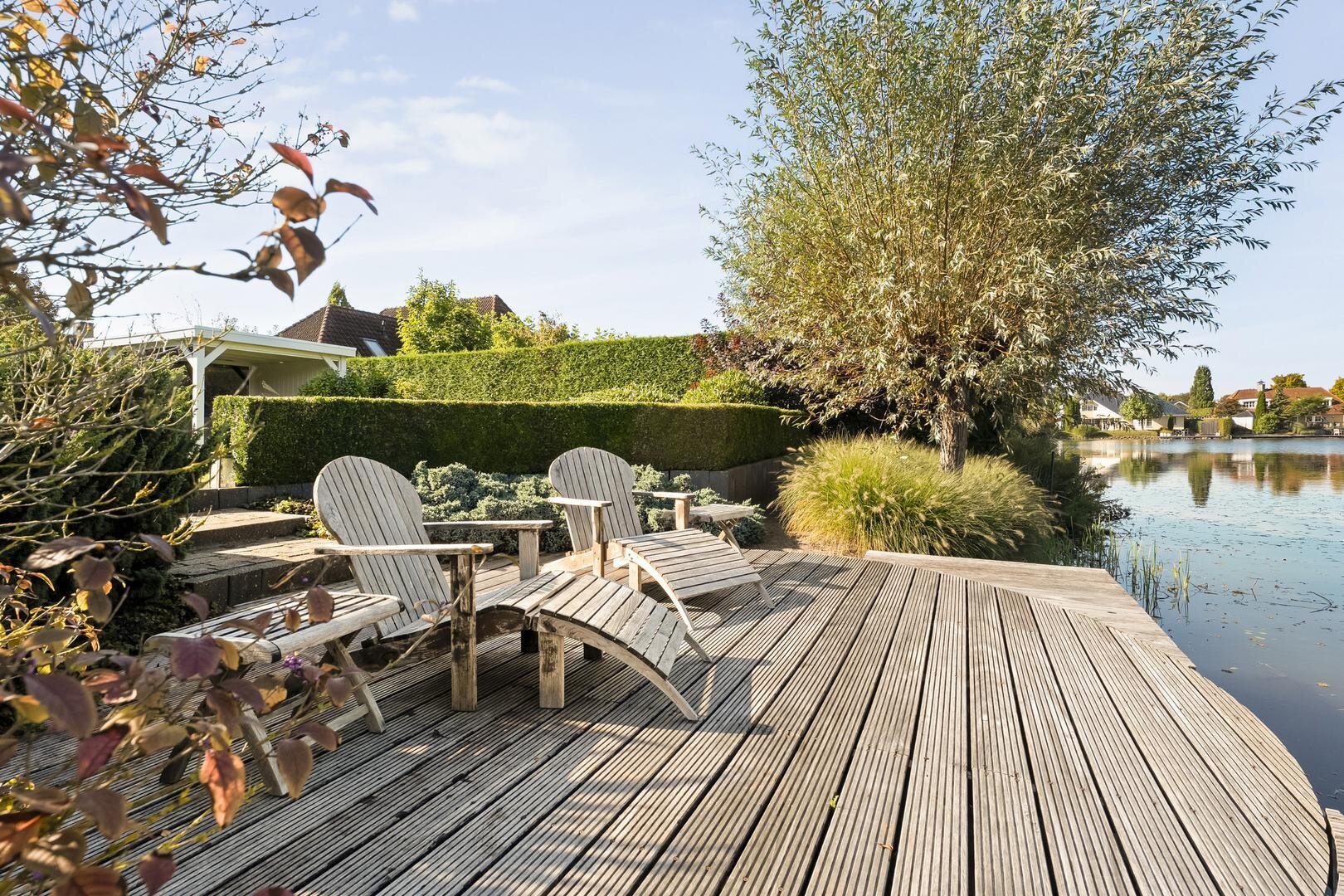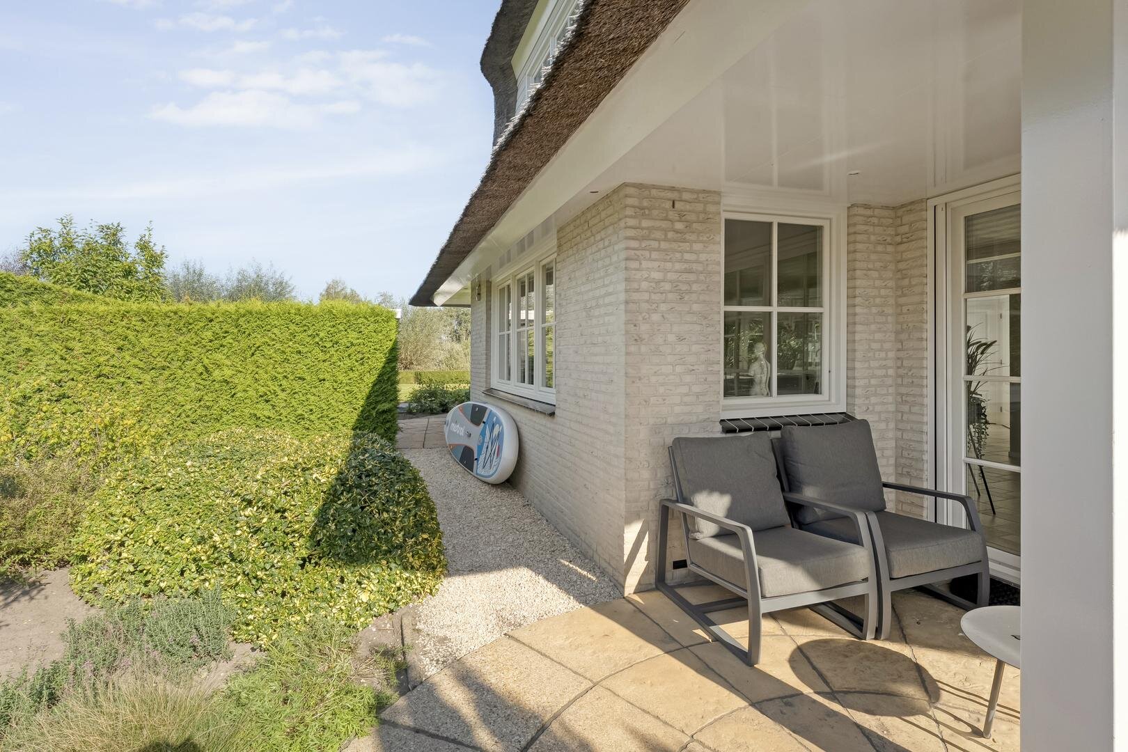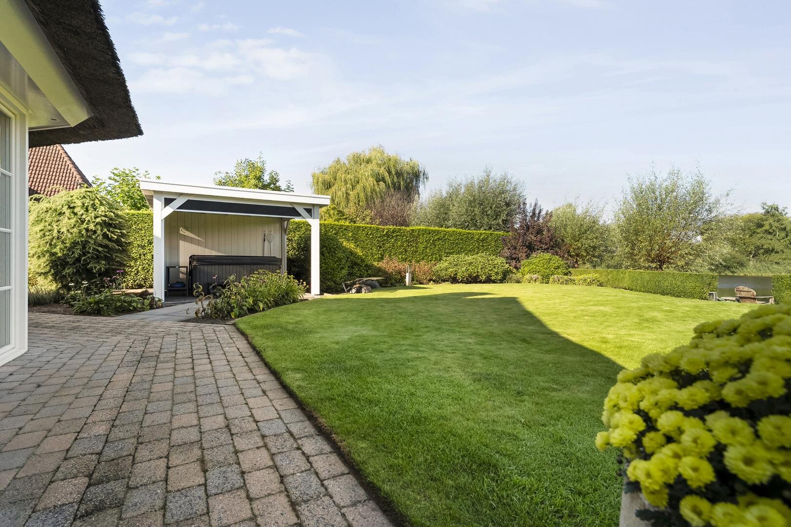 De buitenruimte is een waar paradijs. De ruime tuin rondom de woning biedt meerdere zonneterrassen, omgeven door groen en met directe toegang tot het water. Aan de waterzijde bevindt zich een steiger, ideaal voor het aanleggen van een (fluister)bootje of simpelweg om te genieten van het kabbelende water. In de tuin is bovendien een jacuzzi geplaatst, perfect gepositioneerd om in alle privacy, al bubbelend, te genieten van de rust, het uitzicht en de ondergaande zon boven de Klinkenvlierse plassen.