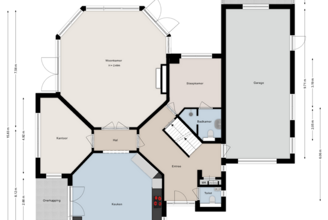 - begane grond beschikt over vloerverwarming i.c.m. heteluchtverwarming