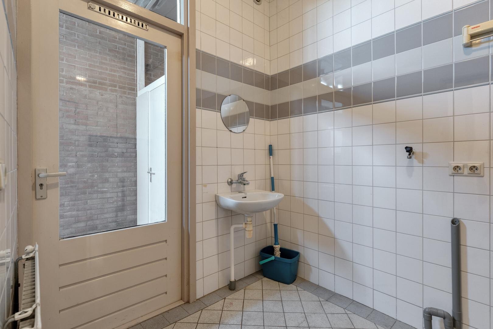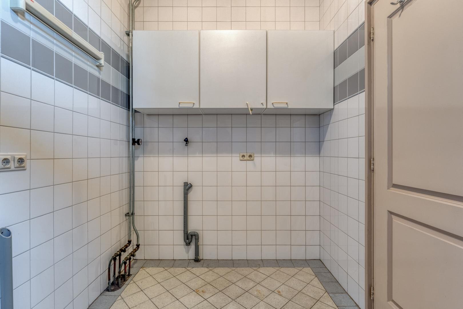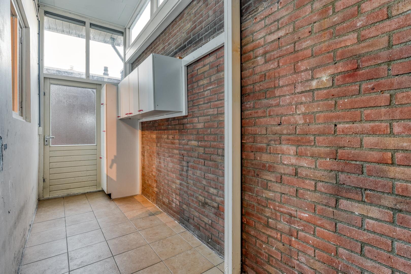 Bijkeuken met wasmachineaansluiting. Berging met vaste kast.